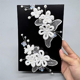 Trâm cài tóc cô dâu thiết kế ngọc trai và hoa 5 canh mềm mại, nữ tính. Tôn lên vẻ đẹp cho mái tóc xinh. Thích hợp trang điểm, make up cô dâu, trang điểm