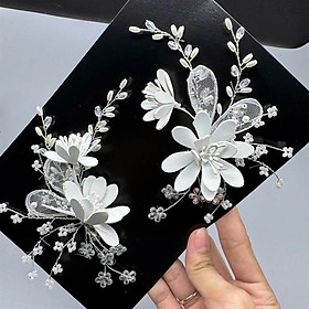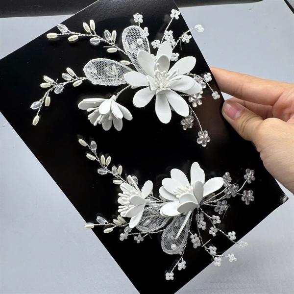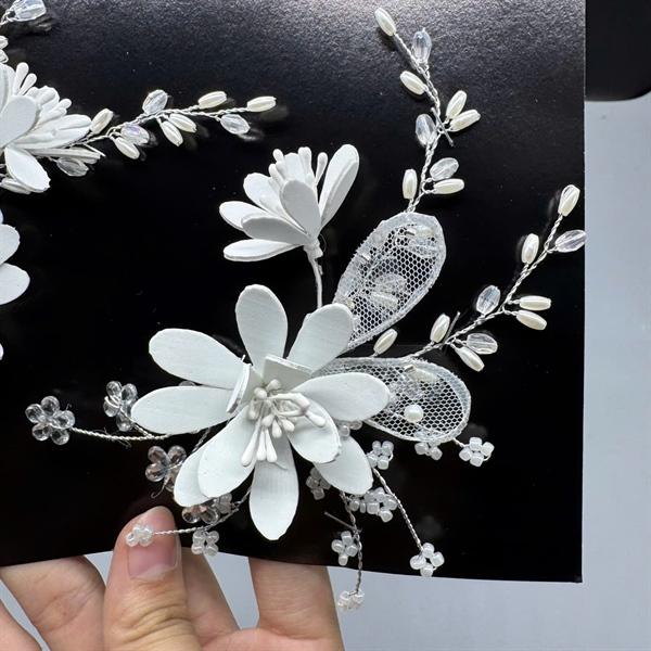 Trâm cài tóc cô dâu thiết kế ngọc trai và hoa 5 canh mềm mại, nữ tính. Tôn lên vẻ đẹp cho mái tóc xinh. Thích hợp trang điểm, make up cô dâu, trang điểm