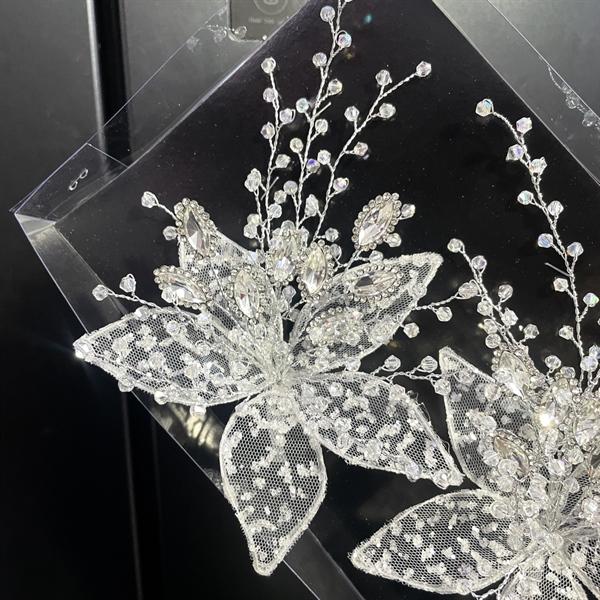 Thiết kế tinh tế với hình hoa nổi 3D được làm từ nhựa cứng trong suốt mang vẻ đẹp thanh lịch. Trâm cài tóc được làm từ chất liệu hợp kim sáng bóng, bền màu