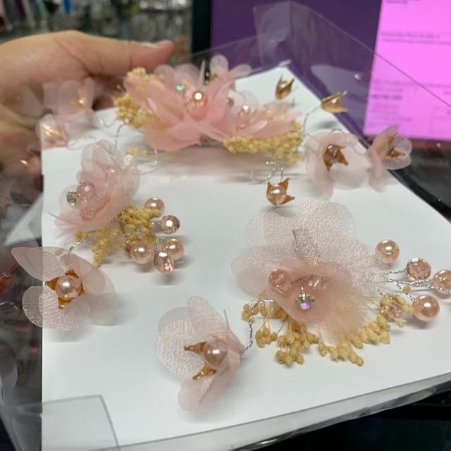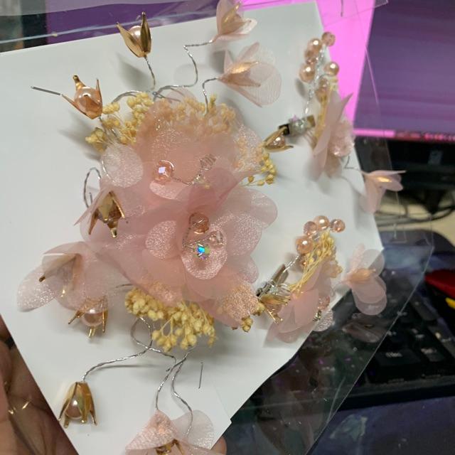 ✨Cài tóc cô dâu voan Hồng cỏ khô đính hạt