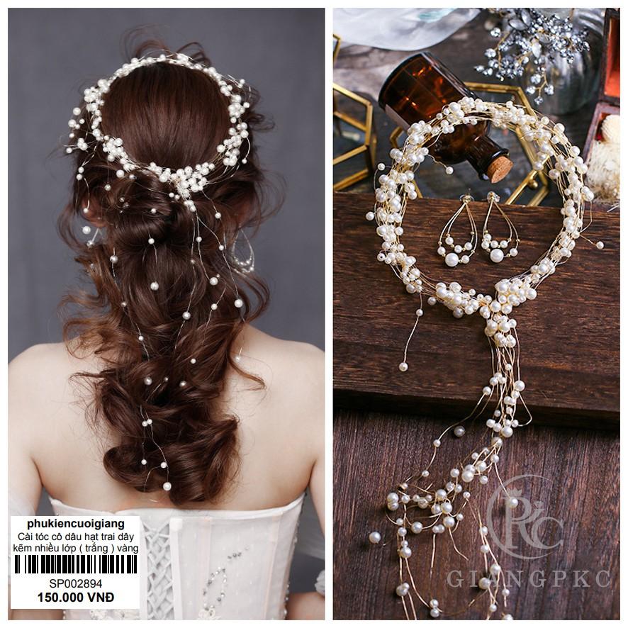 ✨Cài tóc dây hạt trai xếp nhiều lớp không bông tai