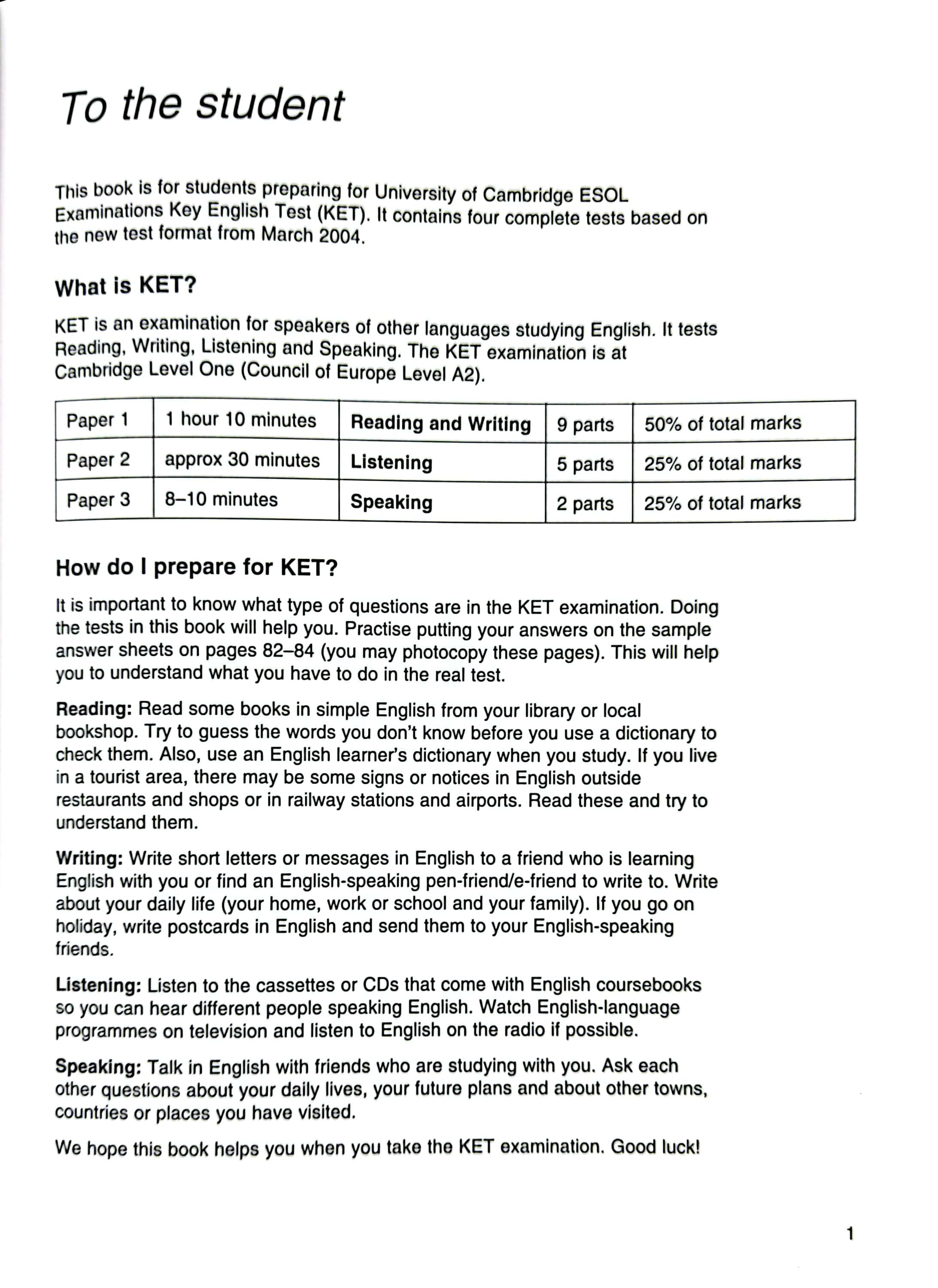 The Cambridge Preliminary English Test 5 practice tests provide candidates with an excellent opportunity to familiarise themselves with the 2004 PET exam and to practise examination techniques. The Student's Book contains practice material for Paper