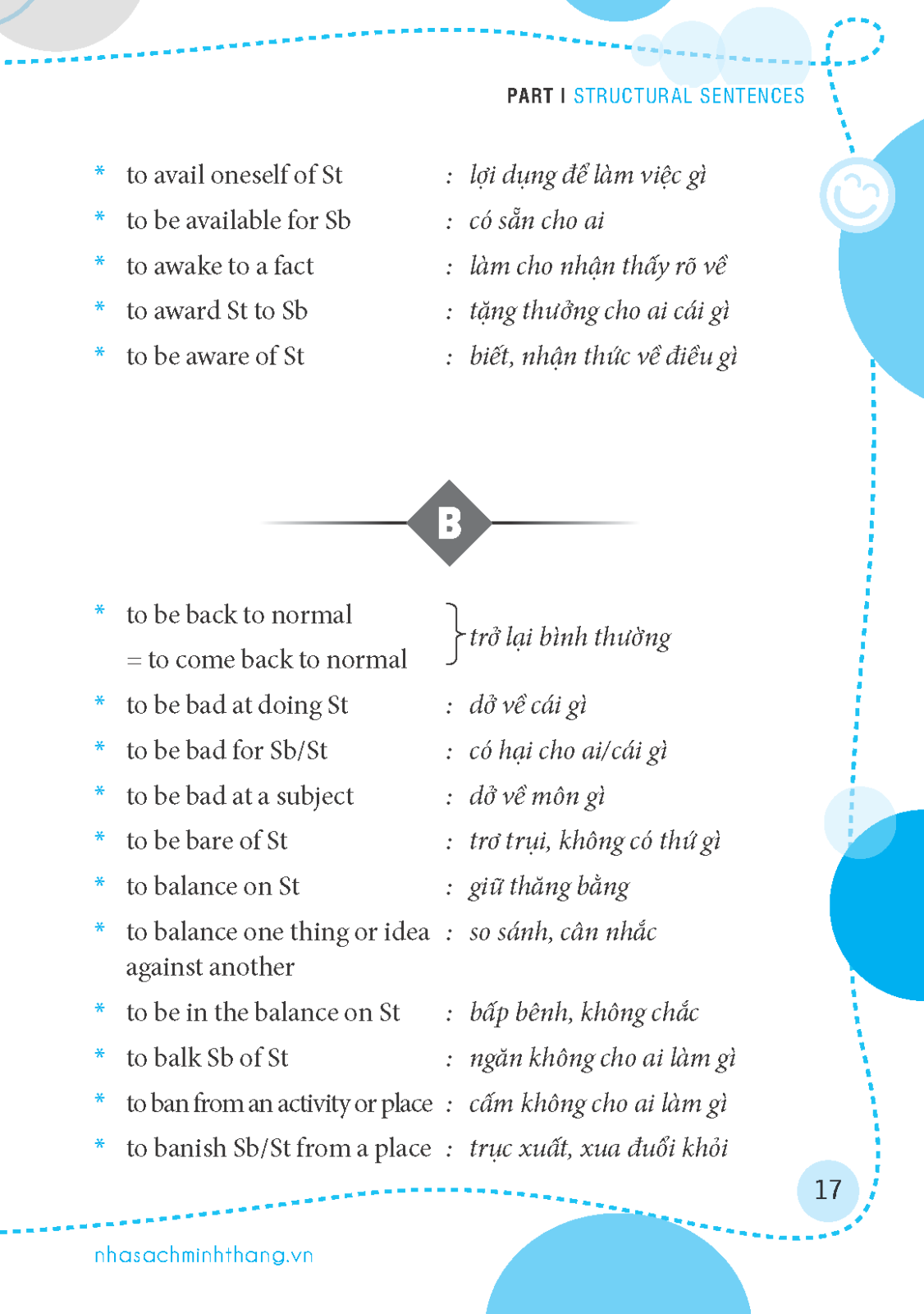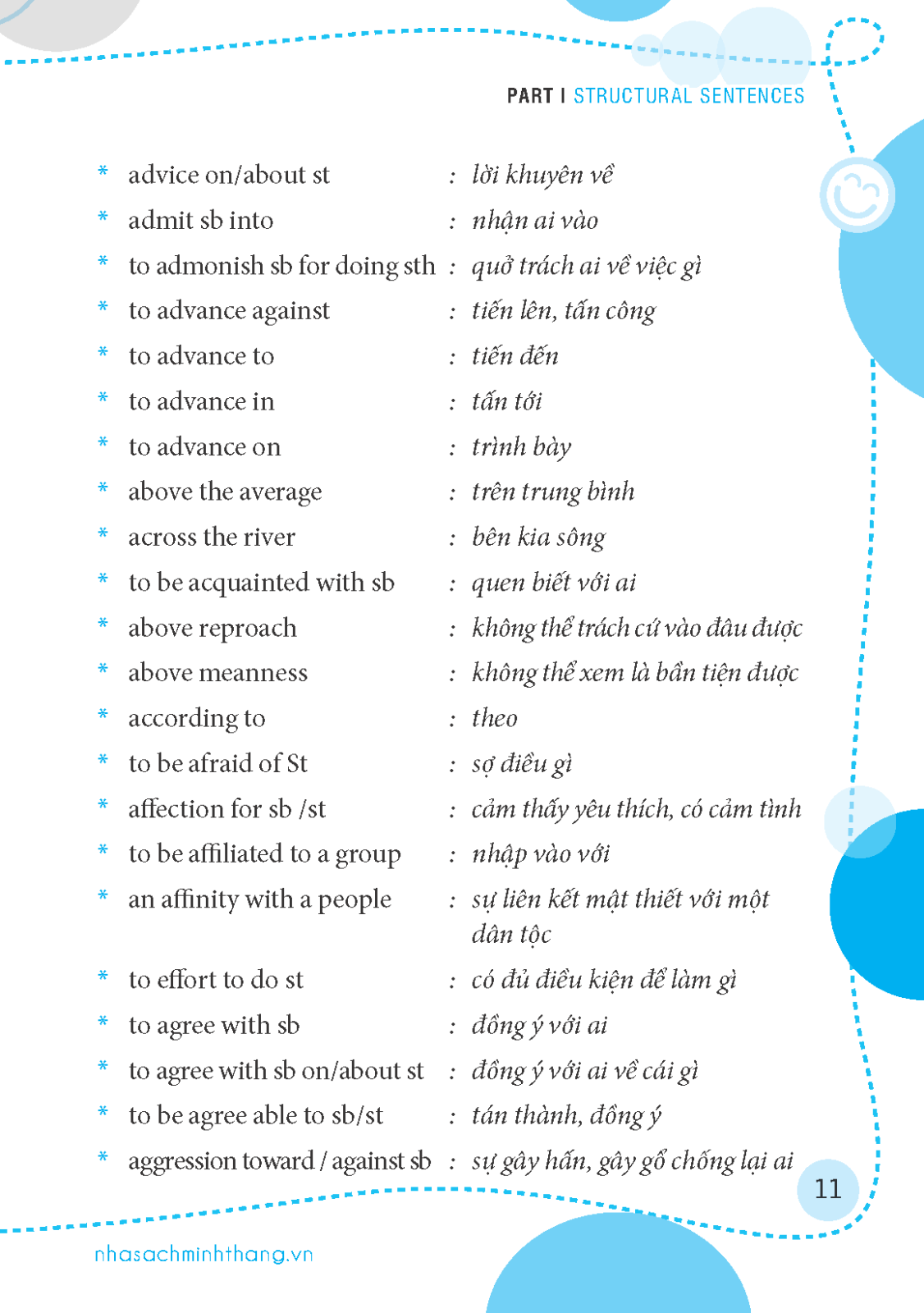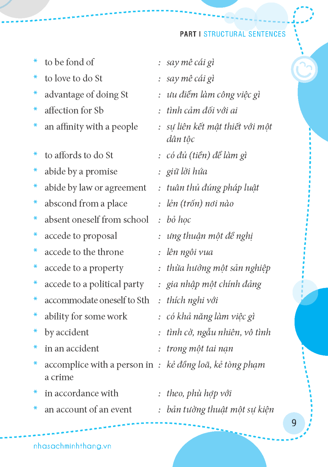 Nếu các nói m.ình đã nắm vững các thời, thì cách phát âm đúng từ của tiếng Anh thôi thì có lẽ là chưa đầy đủ. Các bạn bối rối phần nhiều là do bạn không có vốn cấu trúc câu phong phú, bạn sẽ tự tin hon khi đàm thoại với người nước ngoài, bài luận của các bạn sẽ hay hơn khi vốn cấu trúc câu dùng trong bài không bị nhàm chán.