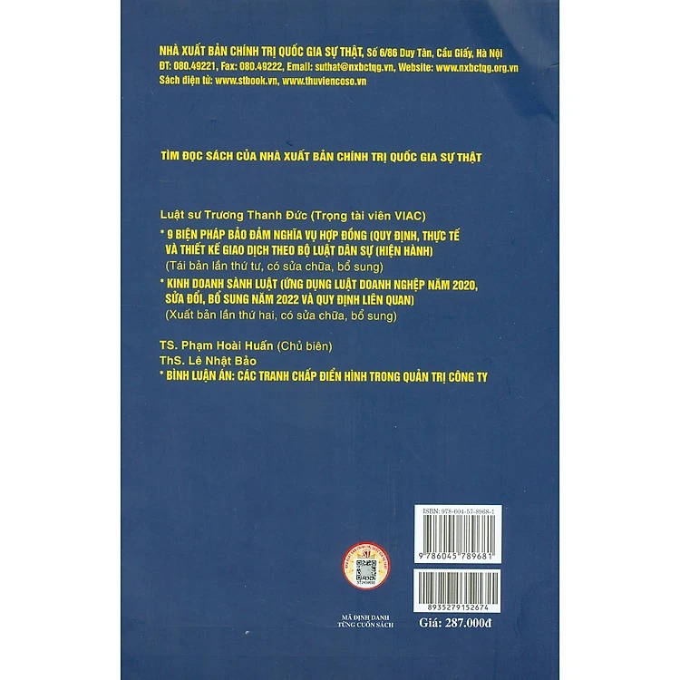 Cuốn sách Cẩm nang pháp luật ngân hàng (Nhận diện những vần đề pháp lý) của Luật sư Trương Thanh Đức, Trọng tài viên VIAC, bao gồm 5 chương, 21 mục và 139 tiểu mục, giúp độc giả nhìn thấy một bức tranh toàn cảnh pháp luật ngân hàng và những điểm nhấn về những vấn đề quan trọng, nổi bật còn tranh cãi trong lĩnh vực này.