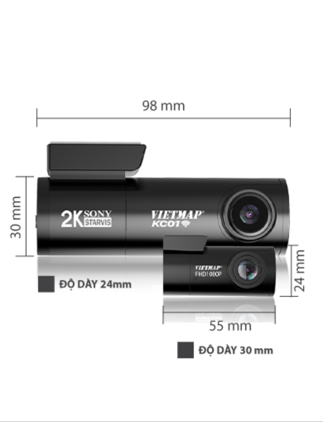 VIETMAP KC01 với camera trước độ phân giải SUPER HD 2K kết hợp cùng camera sau Full HD 1080p ghi lại chi tiết toàn bộ hành trình trước & sau xe cùng với tốc độ.