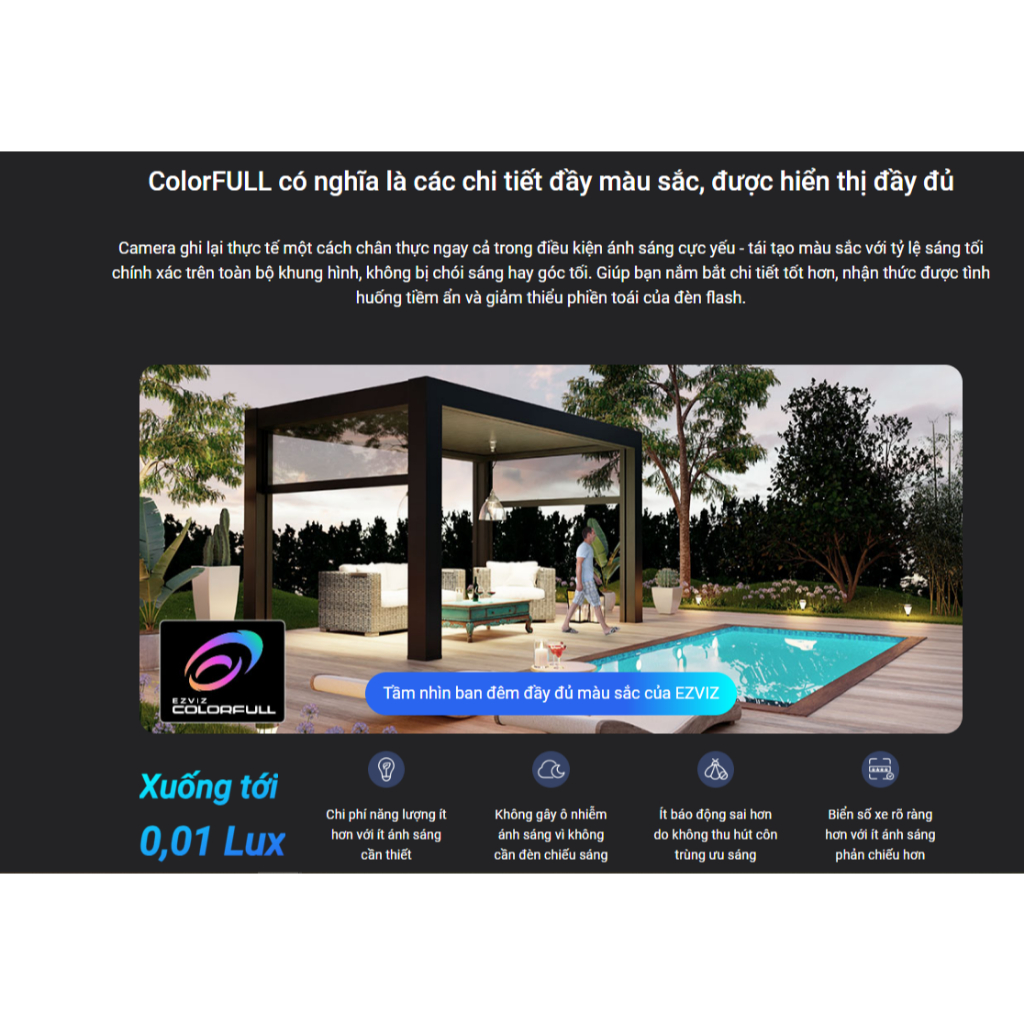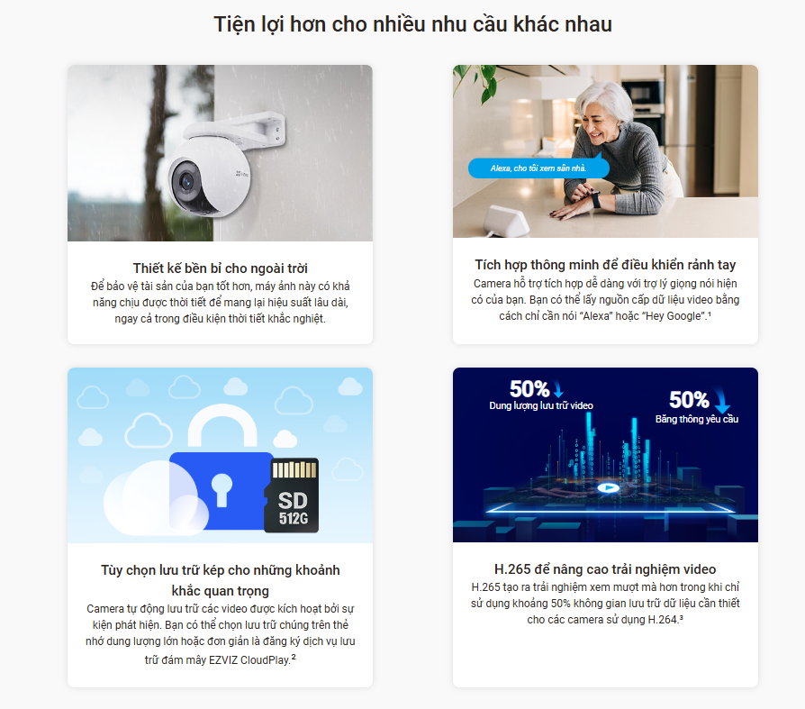 – Điều khiển dễ dàng qua ứng dụng Ezviz trên điện thoại.