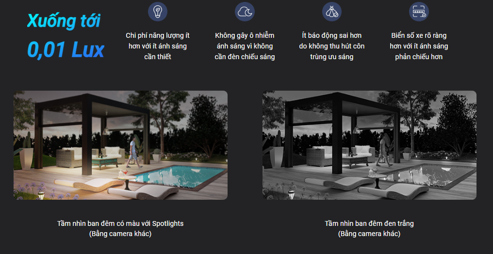 QUAN SÁT CHI TIẾT Các thành phần kính quang học độ phân giải Full HD 1080p cung cấp hình ảnh và video cực kỳ sắc nét, ngay cả trong bóng tối, nhờ chức năng quan