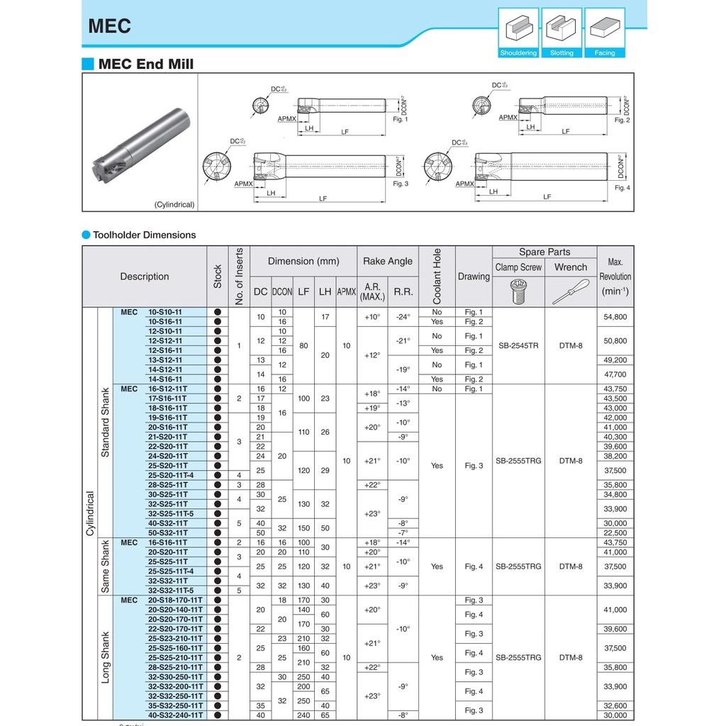 Tên sản phẩm: Cán dao phay D16 Kyocera Model MEC20-S16-11T