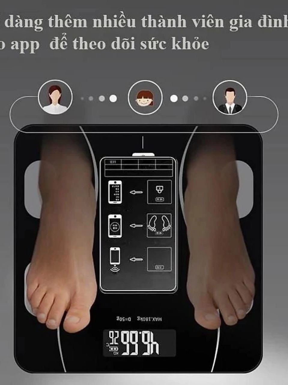 Cân Sức Khỏe Gia Đình là sản phẩm cần thiết mỗi hộ gia đình nên sở hữu ít nhất 1 chiếc để : --> Theo dõi tình hình sức khỏe và cân nặng của con em, cha mẹ, ông bà trong gia đình. Tình hình sức khỏe có liên quan rất lớn đến cân nặng. Ví dụ khi đột ngột bị giảm cân liên tục, giảm nhiều cân trong một thời gian ngắn có thể là dấu hiệu của bệnh tiểu đường,.... --> Sản phẩm nhỏ gọn, có thể nhét vào bất cứ chỗ nào, sẵn sàng sử dụng khi cần. --> Cân để lâu ngày, pin bị hao mòn, pin yếu cũng là nguyên nhân dẫn đến nhiều cân điện tử đo không được chính xác . VÌ VẬY Sắm ngay 1 chiếc Cân có sạc, bảo đảm Pin thường xuyên được nạp đầy, Bạn sẽ có một chiếc cân cho kết quả chính xác hơn. ======================== ƯU ĐIỂM: - Kích thước bản : 26 x 26 cm - Hiển thị nhiệt độ phòng rất tiện. - Cân Sạc Điện, TẶNG KÈM CÁP SẠC USB - Màu phun ánh kim loại rất sang trọng và đẹp - Trọng lượng tối đa 180kg, Độ Chia nhỏ nhất 0.05kg - Cảm biến 4 điểm đời mới giúp cân đo chính xác hơn - Có màn hình LCD HD, hiển thị rõ ràng ngay cả trong bóng tối. - Bề Mặt Kính Cường Lực đúc công nghệ mới, không gây sát thương vì khi vỡ dạng tinh thể - LƯU Ý: Cân được VẬT NHẸ TỪ 0.35kg trở lên với ĐIỀU KIỆN làm cân sáng màn hình trước bằng lực bất kỳ, sau đó mới đặt bật nhẹ lên.CÂN ĐANG TỐI MÀN HÌNH, ĐẶT VẬT NHẸ SẼ KHÔNG CÓ PHẢN ỨNG. ======================= CÁC CHỈ SỐ PHÂN TÍCH : - Cân nặng lý tưởng - Đo trọng lượng cơ thể - Tỉ lệ cơ thể BMI - Đo tỉ lệ mỡ nội tạng - Đo tỷ lệ nước trong cơ thể - Đo tỷ lệ cơ bắp - Đo khối lượng xương - Tỉ lệ trao đổi chất, protein, béo phì,.... LƯU Ý: TUY NHIÊN với 1 số độ tuổi nhất định các chỉ số này sẽ không hỗ trợ hiển thị, ví dụ bé 2 tuổi mặc định chỉ hiển thị cân nặng và chỉ số BMI. *HƯỚNG DẪN SỬ DỤNG: Bước 1: Tải ứng dụng OKOK INTERNATIONAL App trên CH Play hoặc App Store Bước 2: Nhập Mail và Password tùy ý và làm theo hướng dẫn trên app ( rất dễ bao gồm: Nick Name, Ngày sinh, Giới tính, Chiều cao) Bước 3: Bật bluetooth của điện thoại bạn và đứng lên cân để trải nghiệm nhé LƯU Ý KHI CÂN - Đặt cân ở bề mặt thăng bằng, đảm bảo Cân không bị kênh để có kết quả đo chính xác nhất - Không lấy kết quả của 5 lần cân đầu tiên sau khi mới mua về - Mỗi lần cân cách nhau khoảng 10s, không nên lên xuống liên tục - Mỗi khi lấy ra sử dụng, bỏ qua kết quả cân lần đầu tiên, bắt đầu tính kết quả từ lần cân thứ 2 - Khi Pin yếu kết quả đo sẽ bớt chuẩn xác - Khi Kiểm tra độ chuẩn của cân không nên xê dịch vị trí,nên đặt yên 1 vị trí