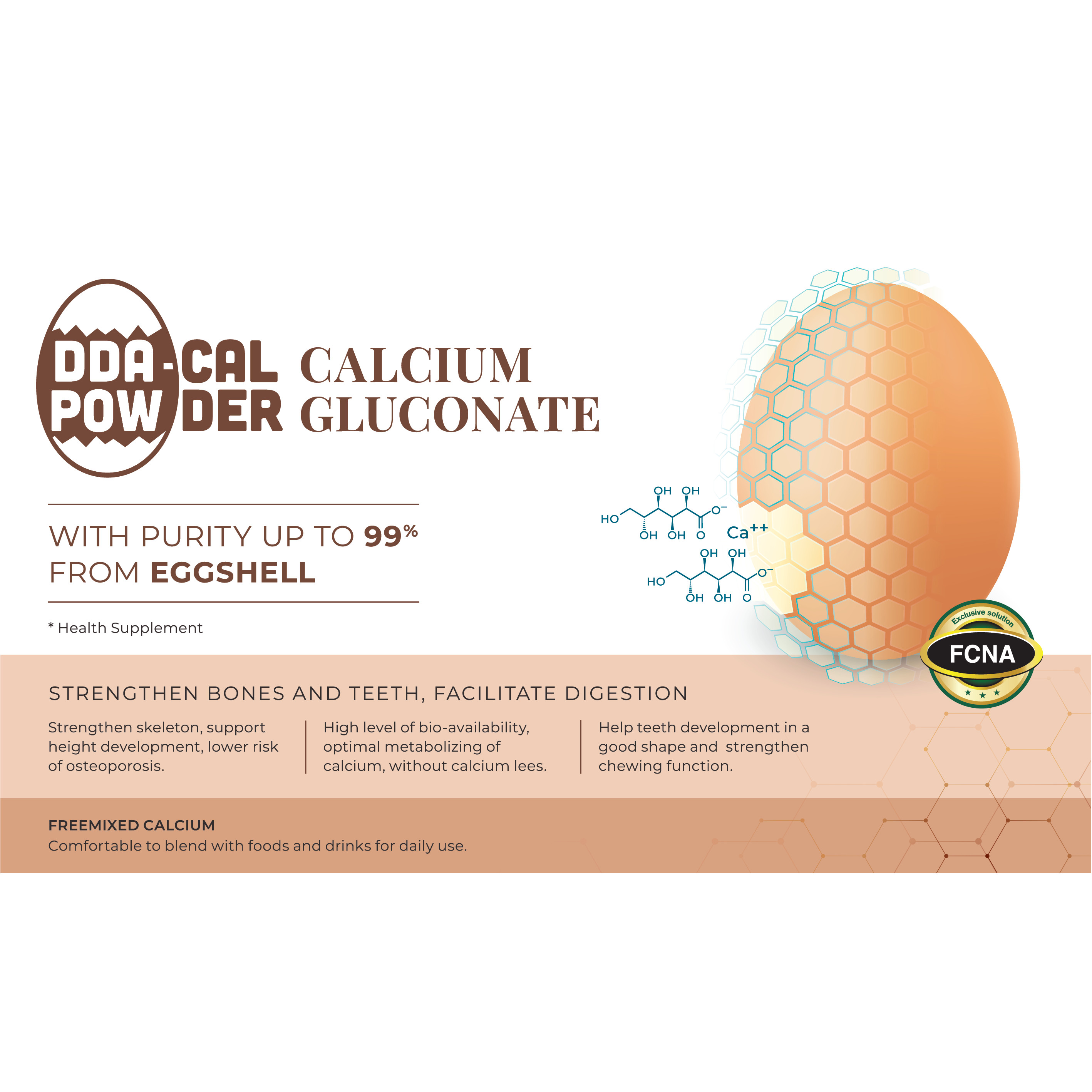 Thực phẩm chức năng canxi hữu cơ DDA chiết xuất từ vỏ trứng gà tinh khiết 99.9% dạng bột hoà tan nhanh, hỗ trợ giúp hệ xương chắc khoẻ, giảm loãng xương, còi xương, tăng chiều