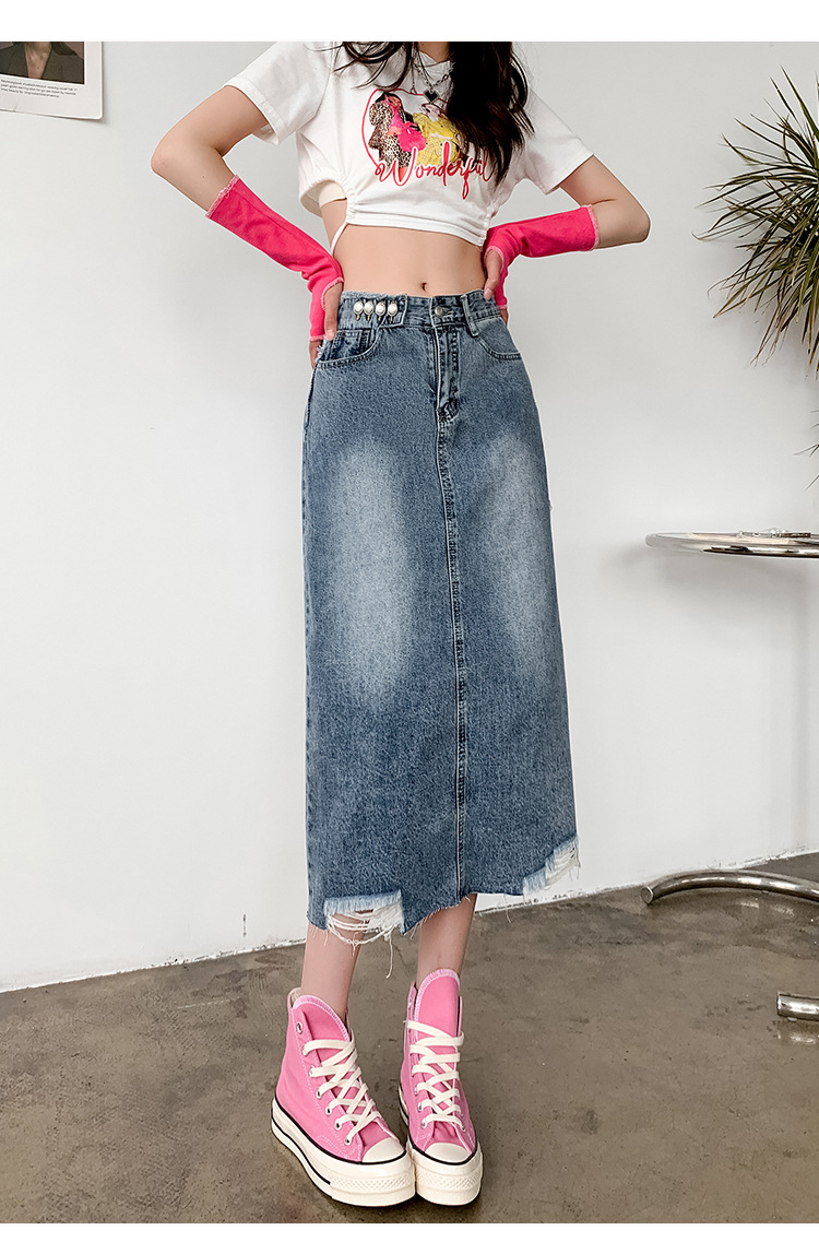 [CAO CẤP] Chân váy jean qua gối rách lai C065 dáng suông wax xanh xám không co dãn SẢN PHẨM CHỈ CÓ VÁY (KHÔNG KÈM ÁO, KHÔNG KÈM BẤT KỲ PHỤ KIỆN NÀO KHÁC) HÀNG