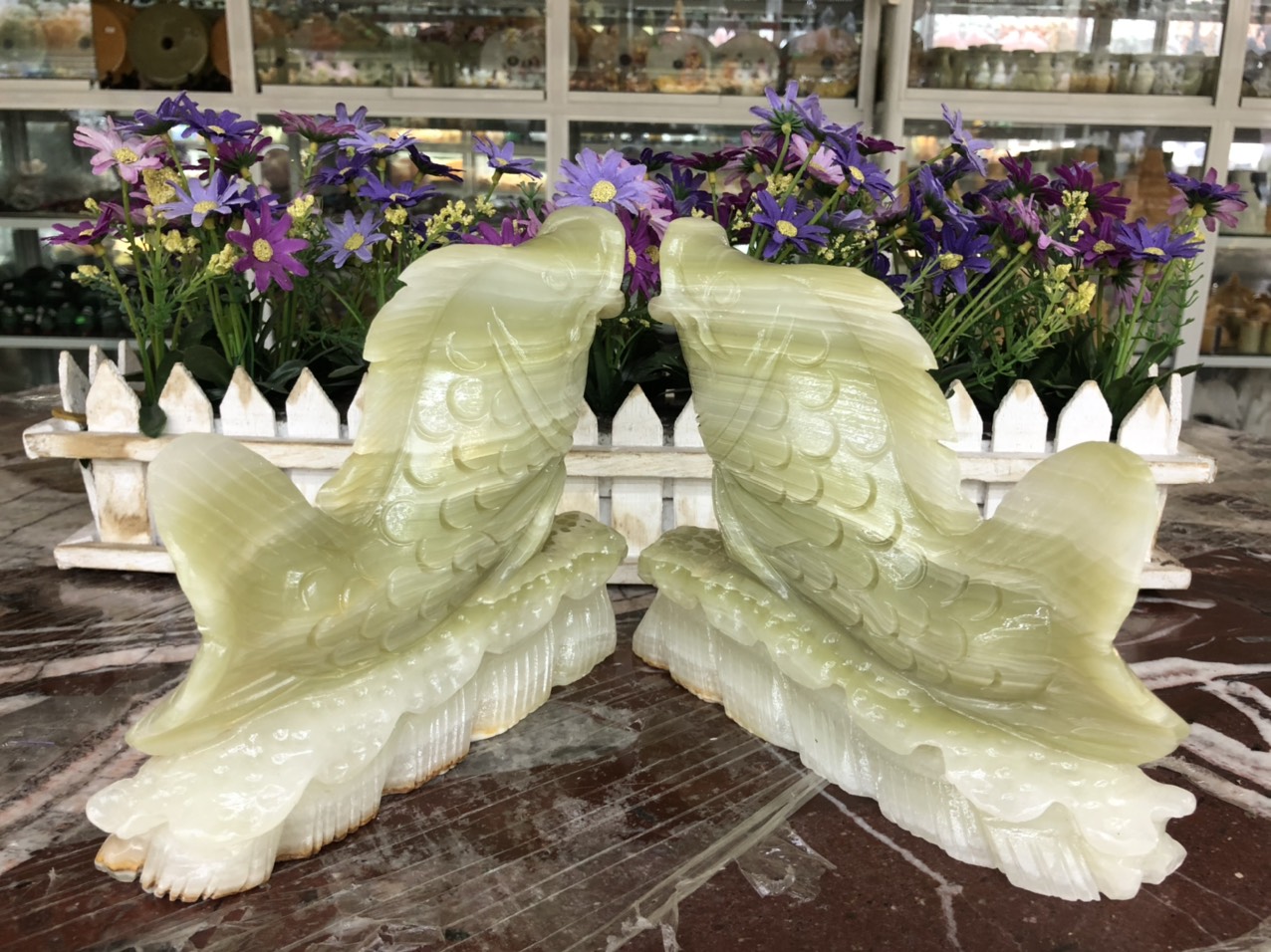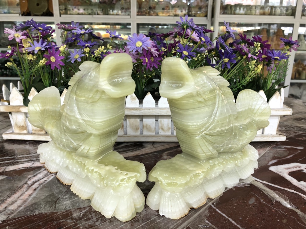 ✨Cặp cá chép vượt vũ môn phong thủy đá ngọc onyx trang trí bàn làm việc - Dài 20 cm