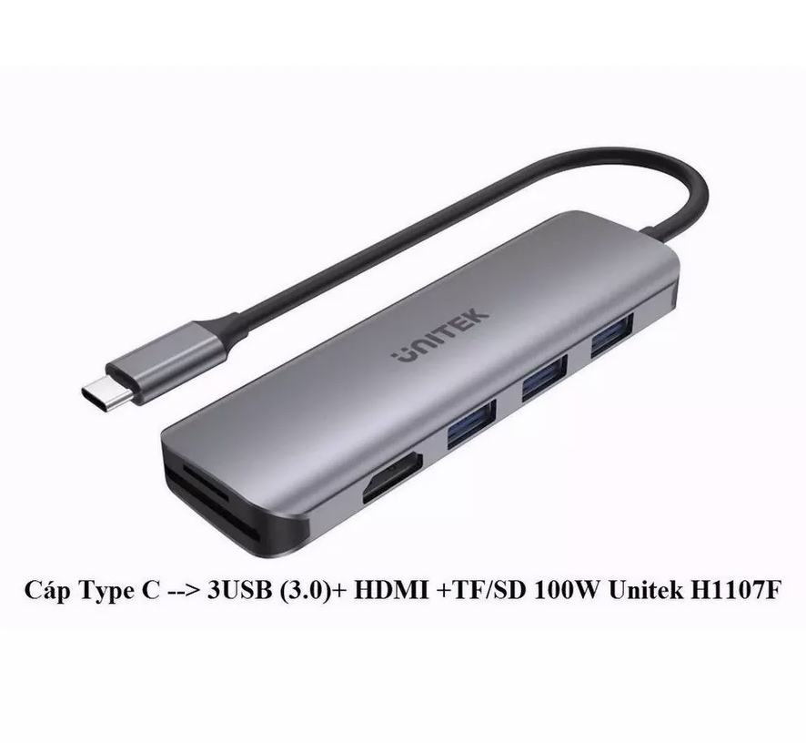 ✨CÁP CHUYỂN TYPE-C RA 3 USB 3.0 + HDMI + TF/SD UNITEK H1107F HÀNG CHÍNH HÃNG