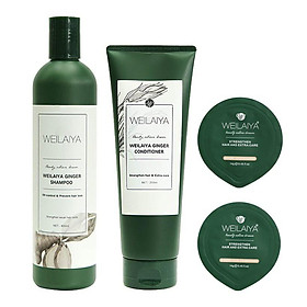 Cặp dầu gội xả gừng kích mọc tóc Weilaiya gồm: - 1 Dầu gội gừng kích mọc tóc Weilaiya Ginger Shampoo 400ml - 1 Dầu xả gừng kích mọc tóc Weilaiya Ginger Conditioner 250ml -