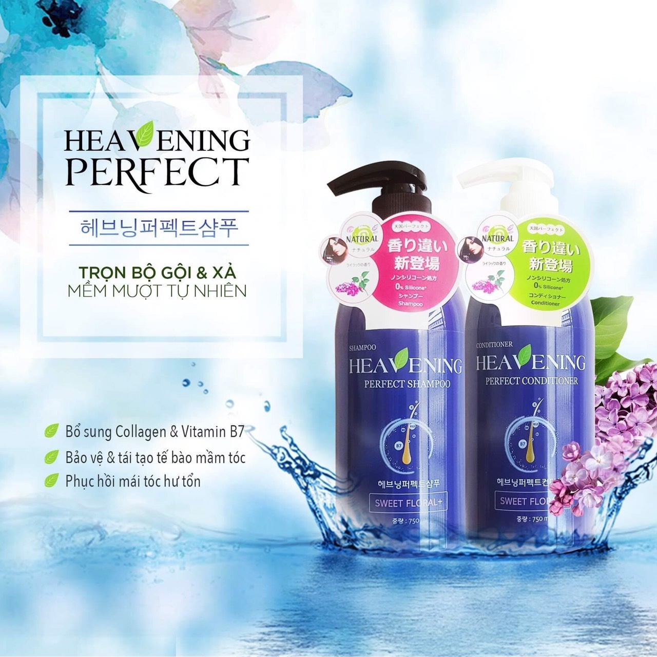 Heavening Perfect là thương hiệu chăm sóc tóc & da chuyên dụng dành cho mọi loại tóc hư tổn và chẻ ngọn, giúp cho tóc trở lên khỏe mạnh, suôn mượt đầy sức sống “Hiệu quả giảm khô, xơ, chẻ ngọn & đứt gãy lên tới 80% chỉ sau 10 lần gội xả” Sản phẩm được các chuyên gia Beauty salon & Spa uy tín tại Hàn Quốc khuyên dùng.