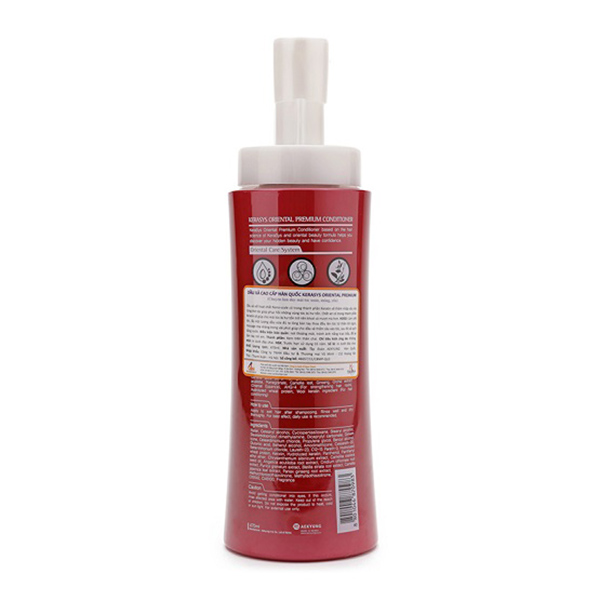Dầu gội/xả cao cấp Hàn Quốc KeraSys Oriental Premium với tinh dầu hạt trà giúp tạo thành lớp màng vững chắc bảo vệ da đầu khỏi những tác động xấu và bổ sung cho da đầu thành phần lipid còn thiếu, giúp mái tóc dày, khỏe mạnh, suôn mềm, óng mượt.Chất xơ có trong thành phần Keratin sẽ giúp cho mái tóc bị hư tổn trở nên khỏe và mềm mượt hơn. Kết quả thực tế được kiểm nghiệm tại các viện nghiên cứu hàng đầu thế giới, tóc mềm hơn 1.6 lần và cải thiện 79% tình trạng xơ gẫy chỉ sau 5 lần sử dụng.Kerasys được sản xuất dưới quy trình khắt khe tăng 2.5 lần dưỡng tóc, giúp tóc chắc khỏe, suôn mượt. Sau khi sử dụng, tóc sẽ được bảo vệ bởi 1 lớp màng mỏng tránh hư tổn từ các tác động bên ngoài đồng thời rất êm dịu, không gây kích ứng cho da đầu. Hướng dẫn sử dụngLấy một lượng dầu vừa đủ ra lòng bàn tay thoa đều lên tóc từ thân tới ngọn, massage nhẹ nhàng trong vài phút giúp cho dầu xả thấm sâu vào tóc, sau đó xả sạch bằng nước