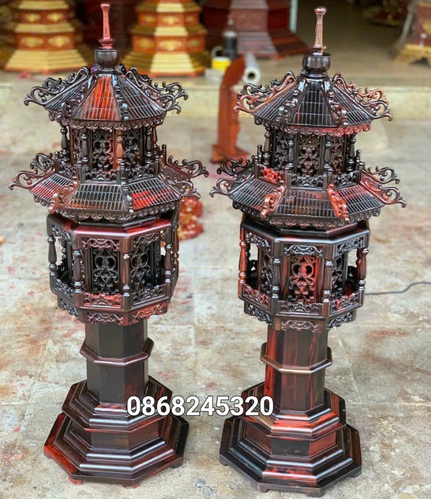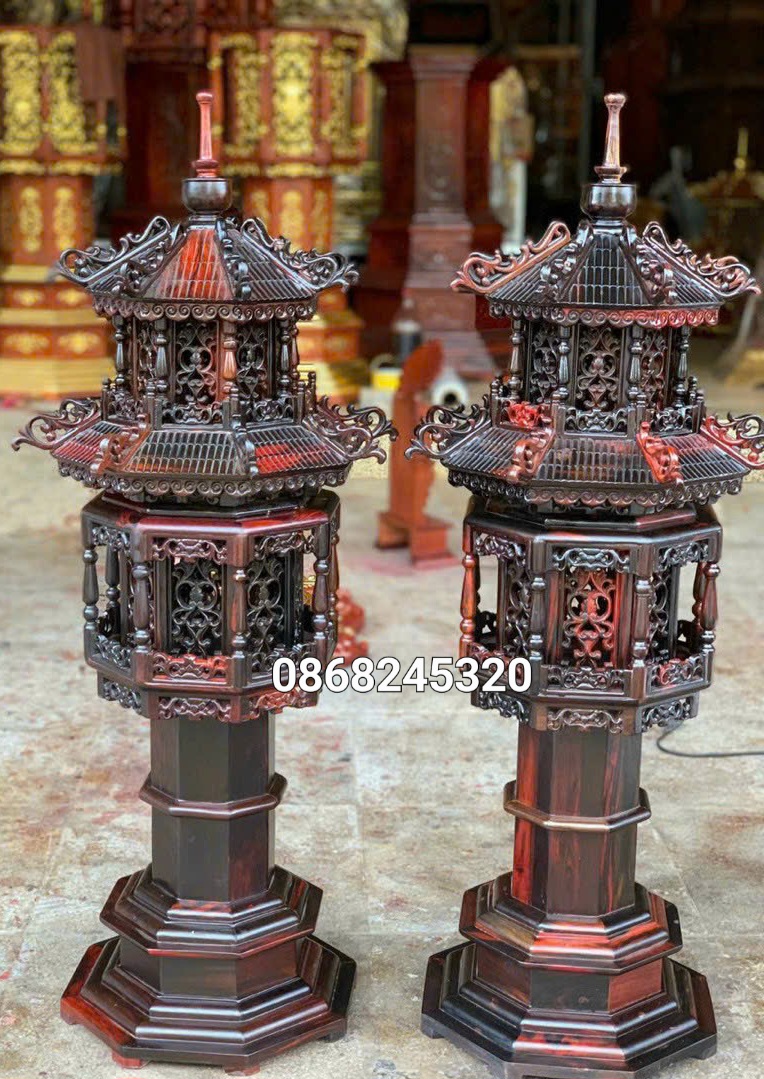 Cặp đèn thờ bát giác 2 mái chất liệu gỗ trắc đen đỏ #đồ_gỗ #gỗtrắc #denthogotrac