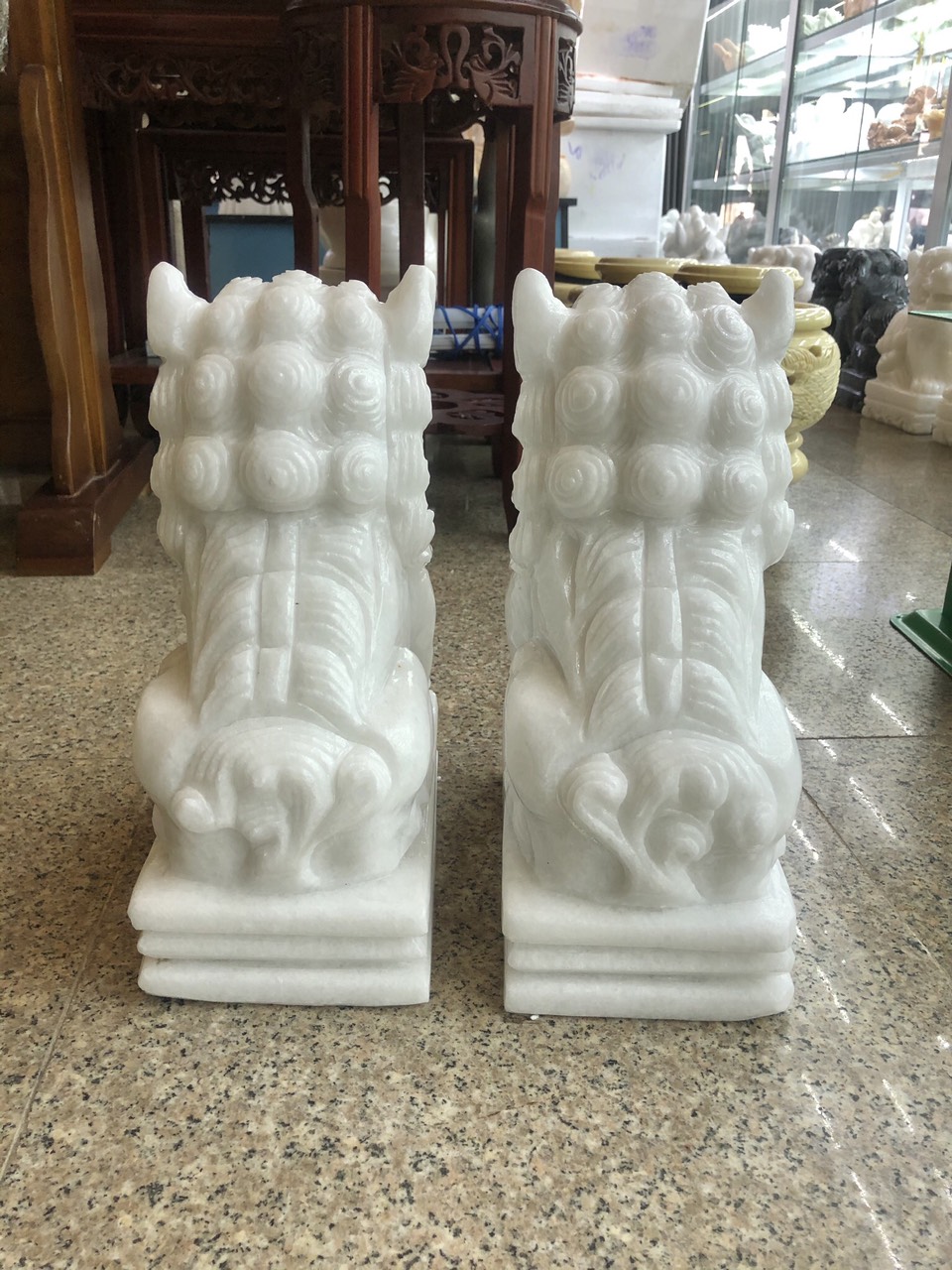 Kích thước: Dài 11 cm x Rộng 7 cm x Cao 15 cm Khối lượng: 3,6 kg Chất liệu: Đá trắng Vị trí đặt: Bàn làm việc, Phòng khách, Cửa hàng, Công ty, Bàn thờ.