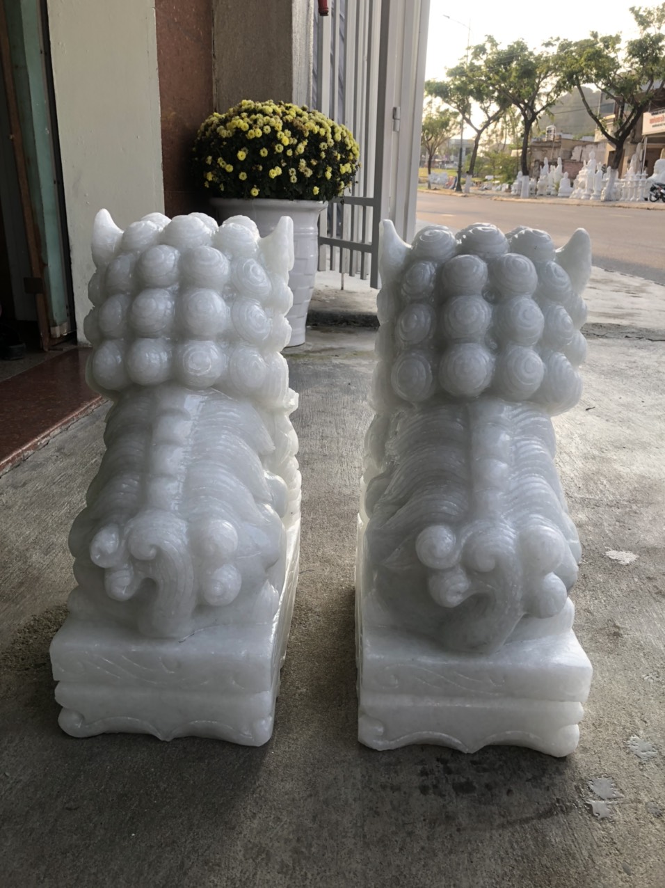 Kỳ Lân đá có tác dụng hóa giải Bạch Hổ. Đặt một đôi Lân ở phương Bạch Hổ trong nhà có thể hóa giải hung tính của phương Bạch Hổ, làm cho mọi người sống trong nhà được bình an.