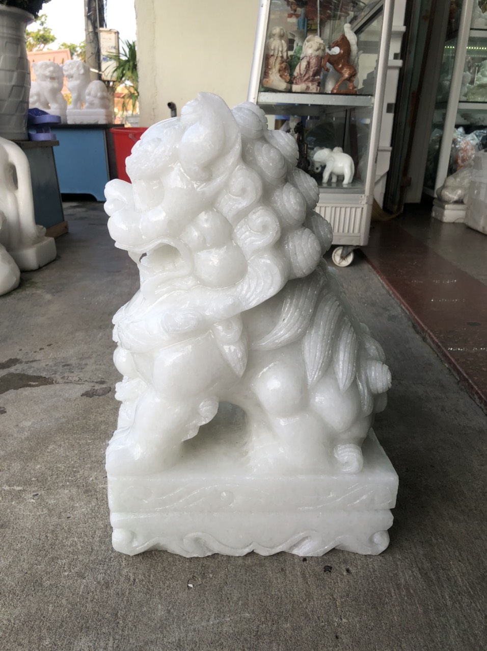 Kích thước: Dài 11 cm x Rộng 7 cm x Cao 15 cm Khối lượng: 3,6 kg Chất liệu: Đá trắng Vị trí đặt: Bàn làm việc, Phòng khách, Cửa hàng, Công ty, Bàn thờ.