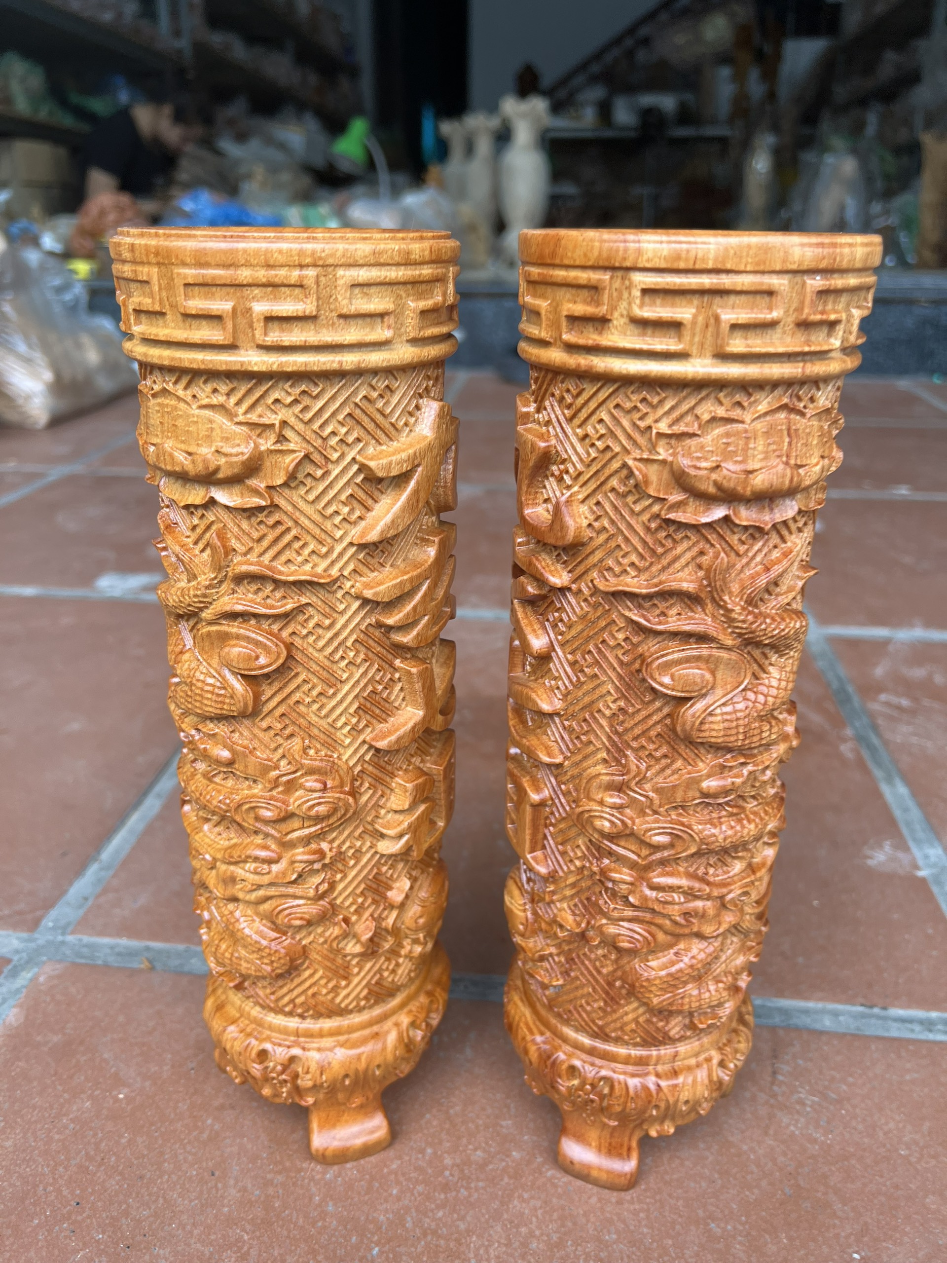 ✨Cặp Ống đựng nhang bằng gỗ hương đá cao 30x10cm