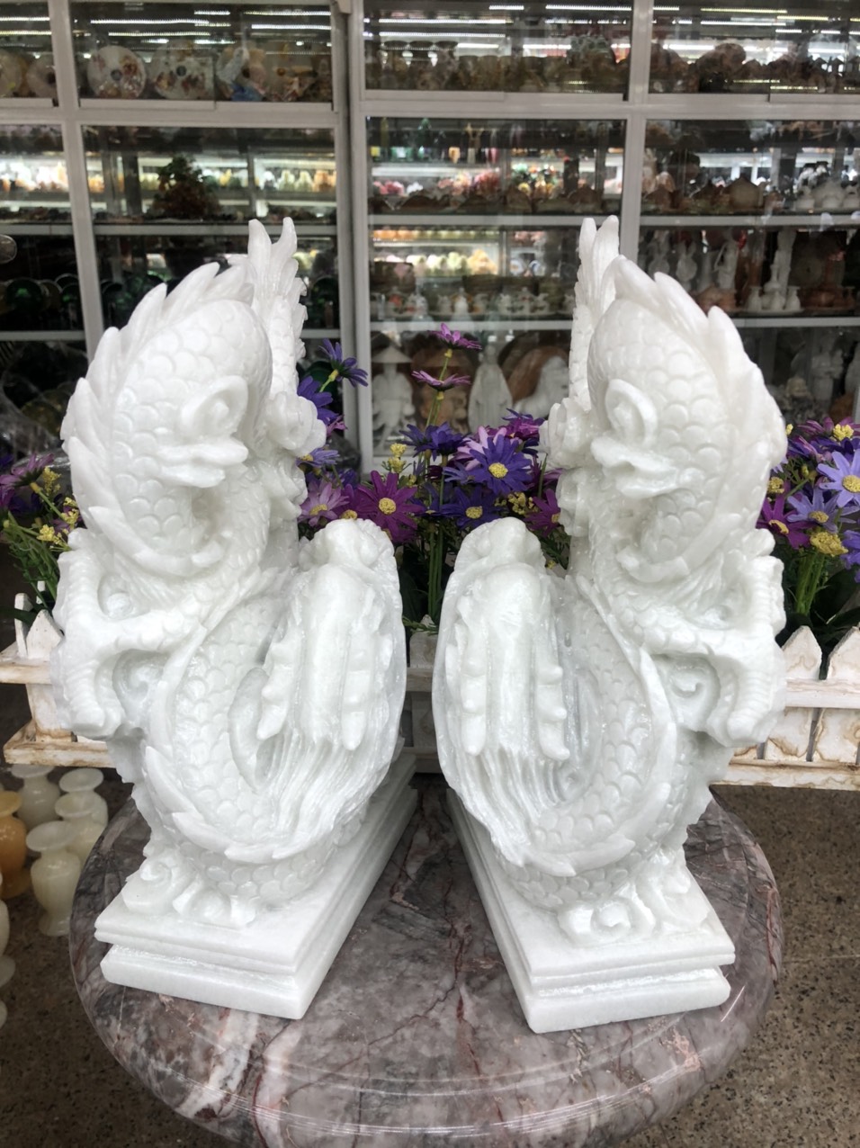 ✨Cặp Rồng đứng phong thủy đá cẩm thạch trắng - Cao 30 cm