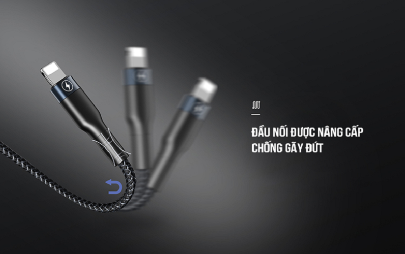 Đầu cáp được gia cố bằng hợp kim nhôm siêu bền bỉ chống gãy khi va đập Combo 3 dây sạc với thiết kế đơn giản phù hợp với nhiều mục đích sử dụng khác