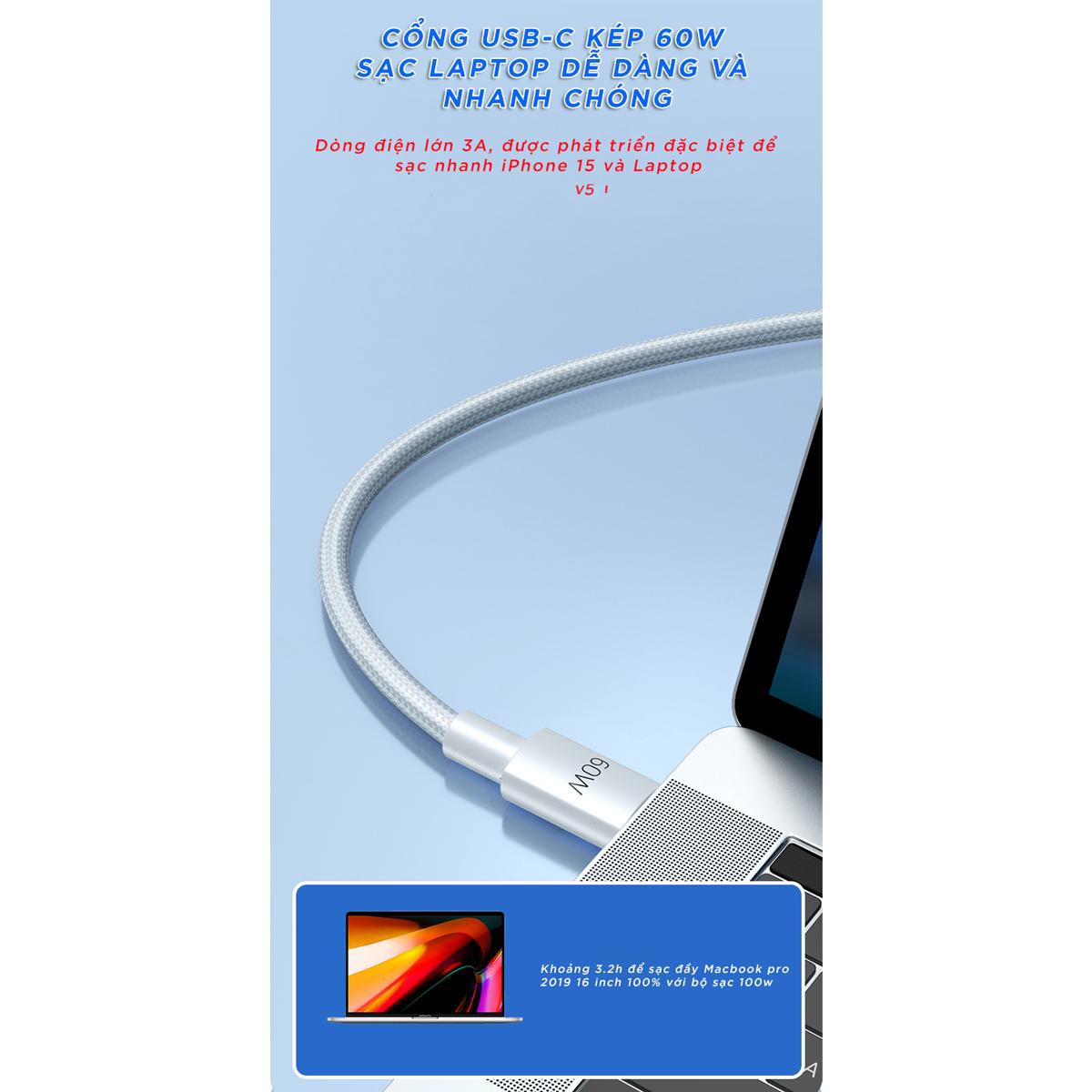 - Cáp sạc & truyền dữ liệu thế hệ mới cho iPhone 15 và Laptop Type-C, Macbook