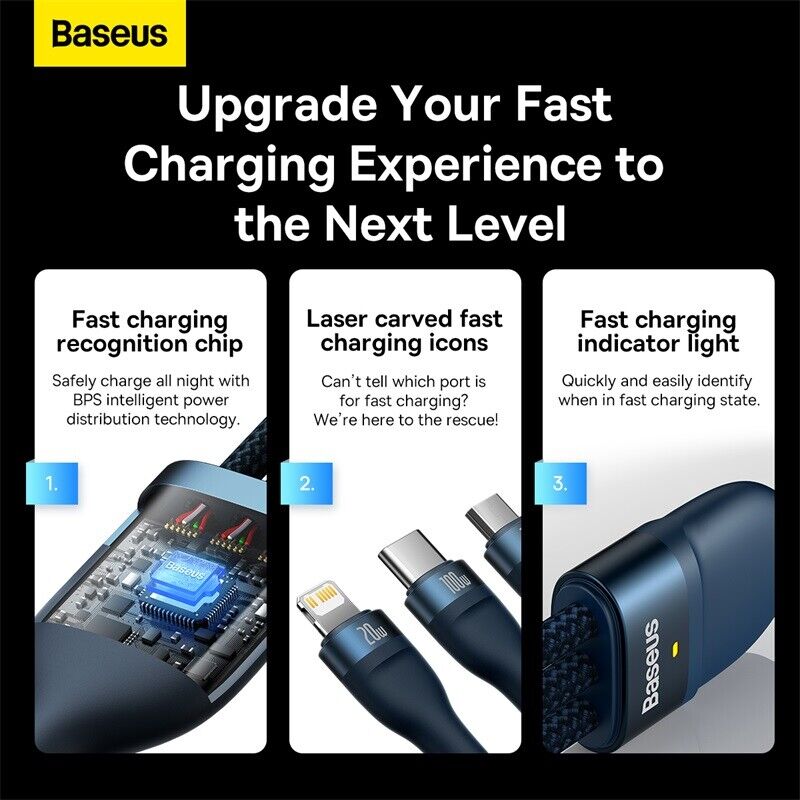 ✨Cáp sạc nhanh đa năng 3 đầu Baseus Flash Series II 3in1 Fast Charging Cable (USB-A+ Type C to Micro + L + Type C, 100W) -Hàng chính hãng