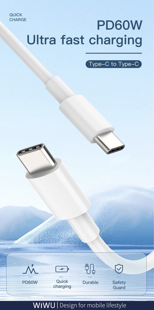 Cáp Sạc nhanh Wiwu Youpin Series Charging Cable G103 USB C sang Type C 60W Thương hiệu: #Wiwu Tương thích với các thiết bị di động #Điệnthoại, #Laptop, #Máytính bảng Kết nối các thiết bị