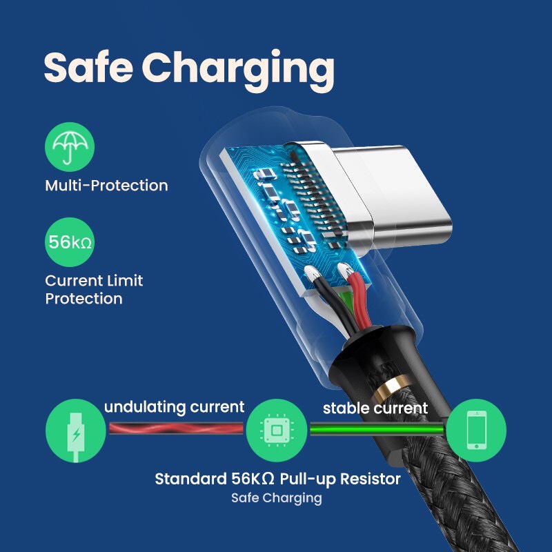 1. Brilliant L-Shaped Design: UGREEN USB C to USB C Fast Charge Cable features a special 90-degree angled Type C Connector to make it easy plug into the devices and prevent bending, cracking issues. The