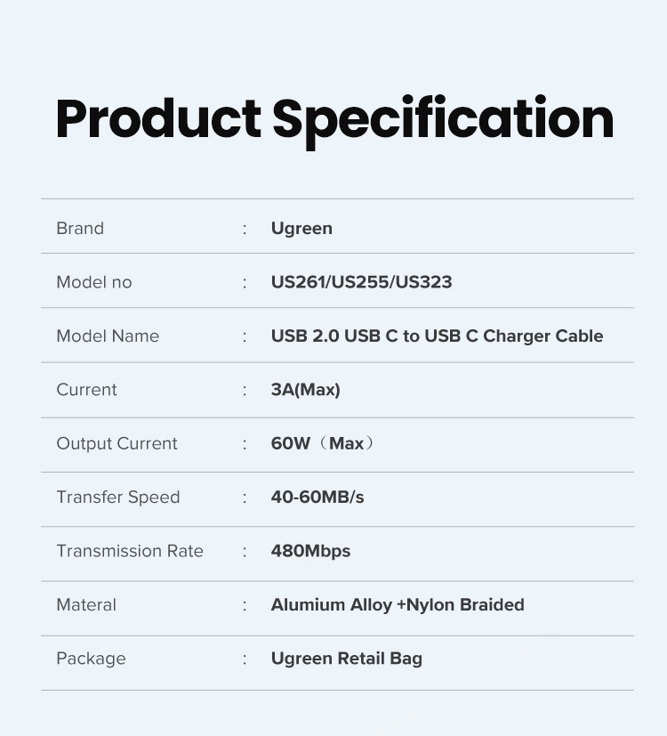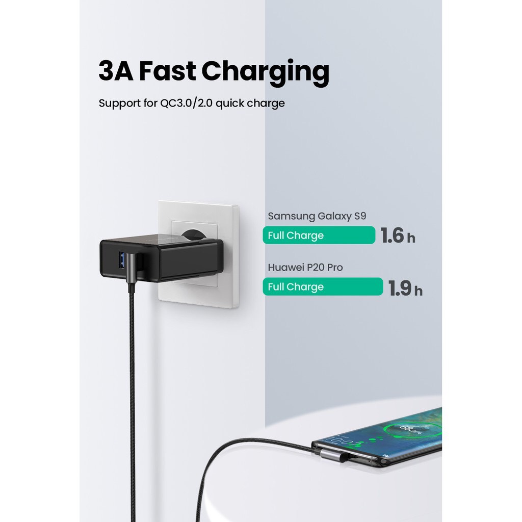 1. Cáp sạc UGREEN USB C (Tương thích với Thunderbolt 3) đảm bảo sạc an toàn ở tốc độ lên đến 3A cho điện thoại thông minh, máy tính bảng và máy tính xách tay