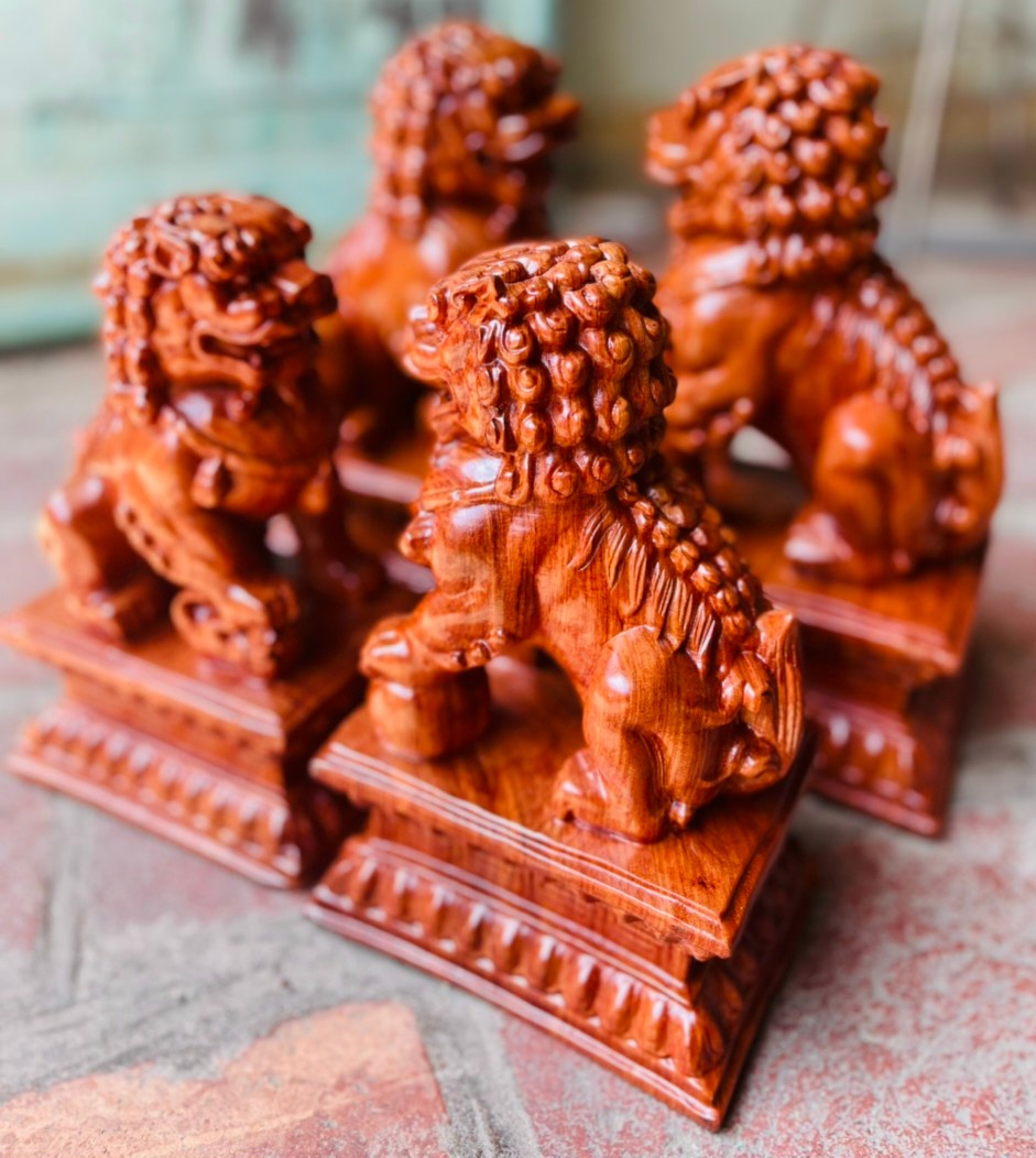 _ Cặp tượng kỳ lân được điêu khắc trạm trổ vô cùng tỉ mỉ , tinh sảo kỳ công .Đi hầu hết tất cả mọi chi tiết góc ngách của tượng đều được gọt tỉa chỉnh sửa cực kỳ sắc nét hoàn toàn bằng tay thủ công .Đồng thời tượng được kiểm định kỹ lưỡng khắt khe như cho vào thẩm sấy cho gỗ khô kiệt .Mục đích trống dập nứt vênh mo ,mối mọt ,Kết hợp với trà nhám đánh giấy giáp nhiều nước sờ mát lạnh .Song cho vào trà nhám đánh giấy giáp nhiều nước sờ mát lạnh .Rồi cho vào phun lót làm bóng mờ để giữ lại mầu sắc vân gỗ tự nhiên .Cặp tượng kỳ lân được làm và hoàn thiện do bàn tay khối óc tài hoa .Từ những người thợ dầy rặn kinh nghiệm ,cũng như tay nghề cao trong làng nghề truyền thống .Chính vì thế cặp tượng kỳ lân đã đáp ứng đầy đủ mọi tiêu trí cần thiết như ( Đẹp bền rẻ ) Thẩm mỹ nghệ thuật với chất lượng tuyệt vời