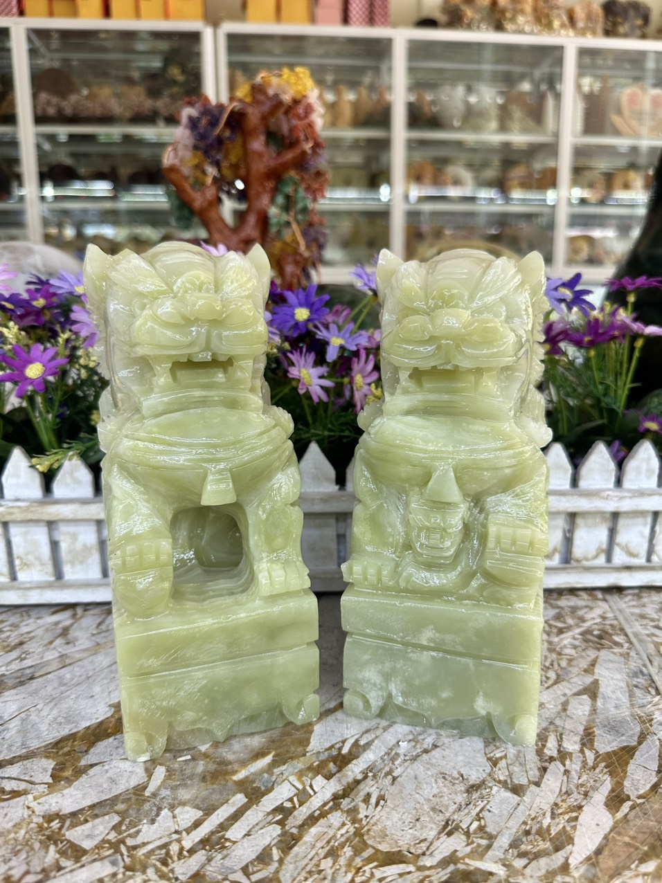 Hợp mệnh Mộc - Hỏa Chất liệu: Đá ngọc Ấn Độ Kích thước: Dài 17 cm x Rộng 6 cm x Cao 13 cm Khối lượng: 2,5 kg/ cặp Ý nghĩa Tỳ Hưu: là linh