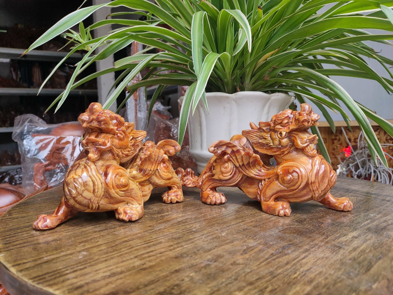 Mua tại Tiktok_ Tượng cặp tỳ hưu được làm bằng chất liệu gỗ hương đá tự nhiên 100%