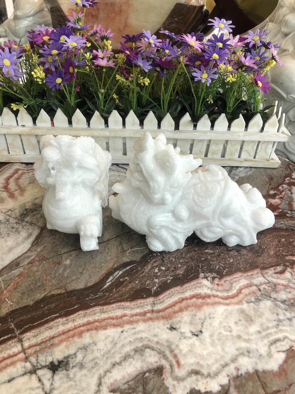 ✨Cặp Tỳ Hưu phong thủy đá cẩm thạch trắng - Dài 20 cm