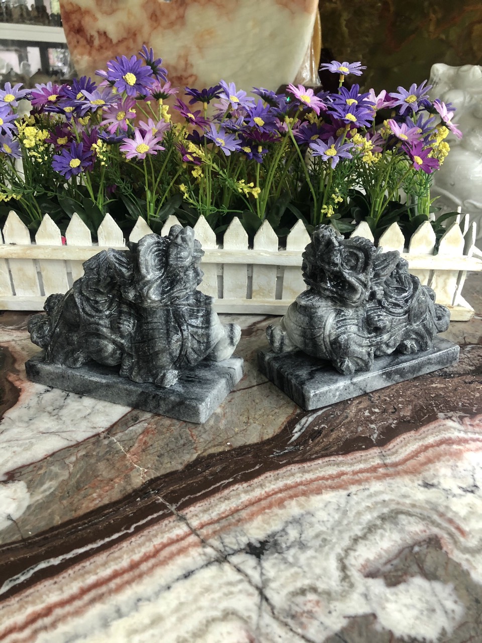 ✨Cặp Tỳ Hưu phong thủy đá cẩm thạch vân đen có đế - Dài 15 cm