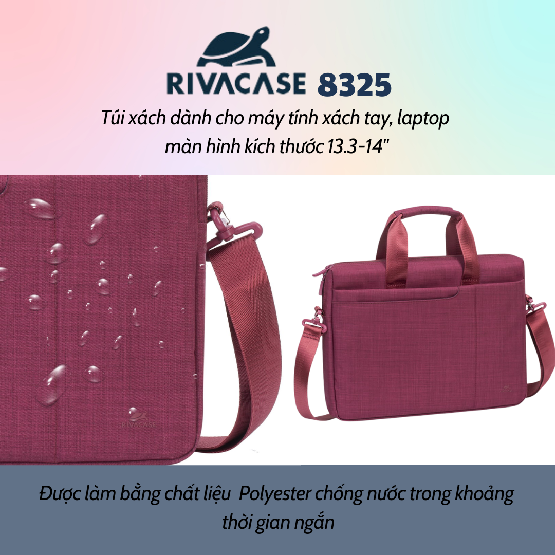 Với thiết kế nhỏ gọn, đơn giản mà sang trọng, túi xách Laptop Rivacase 8325 là sự lựa chọn hoàn hảo cho dân văn phòng, các doanh nhân và các bạn sinh viên dùng cho việc đi học/đi làm hằng ngày hoặc đi công tác. Rivacase 8325 cung cấp không gian chứa đồ đạc tối đa cho người dùng bao gồm một ngăn chính rộng rãi được thiết kế đệm êm dành cho máy tính xách tay 13.3-14”, cùng hai ngăn phụ bên trong phù hợp chứa tất cả các phụ kiện cần thiết như sách vở, tài liệu và máy tính bảng 10.1”. Ngoài ra, hai túi phía trước thích hợp dành cho các phụ kiện nhỏ như smartphone, sạc dự phòng, bút viết, danh thiếp…