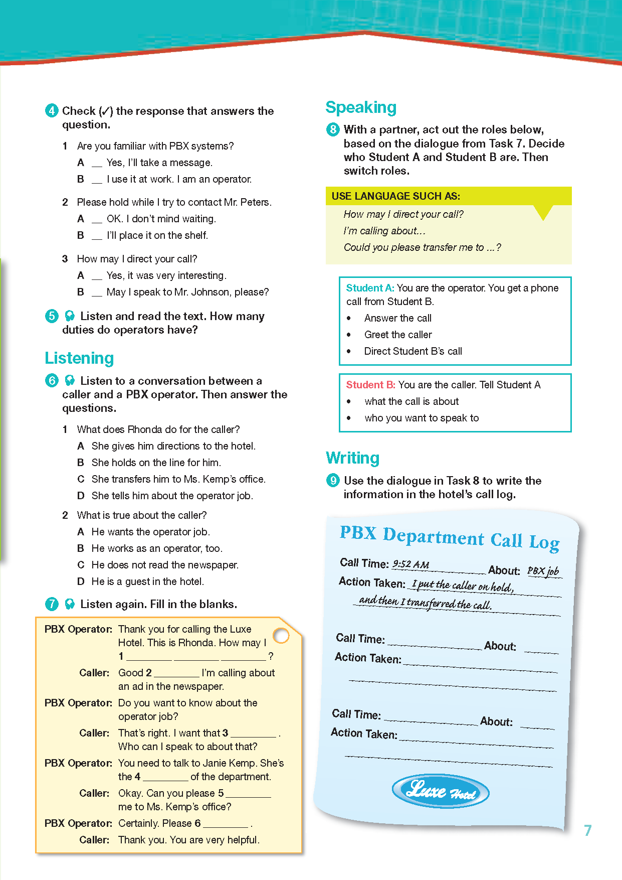 The series is organized into three levels of difficulty and offers over 400 vocabulary terms and phrases. Every unit includes a test of reading comprehension, vocabulary, and listening skills, and leads students through written and oral production.