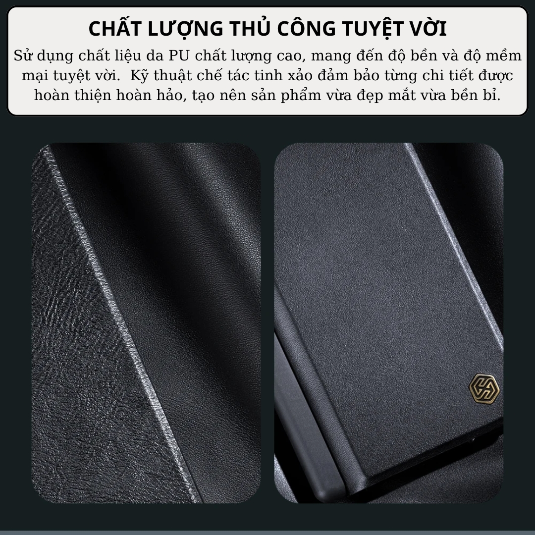 Case bao da chống sốc cho Samsung Galaxy Z Fold 6 trang bị nắp bảo vệ Camera và ngăn đựng S-Pen hiệu Nillkin Qin Pro (chất liệu da cao cấp, thiết kế thời trang cá tính)