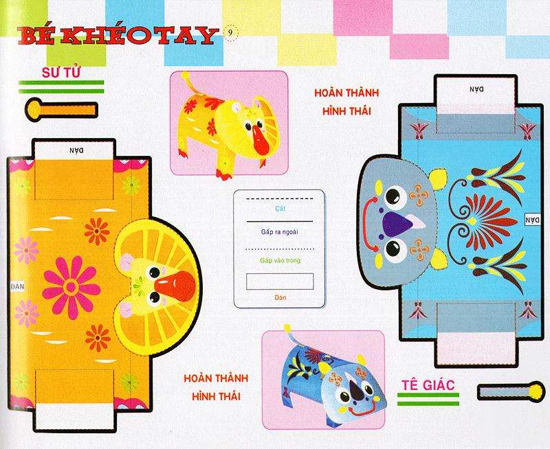 Với những mẫu hình có trong Cắt Và Dán Hình 3D - Bé Khéo Tay - Khu Hứng Thú, bé chỉ việc dùng kéo cắt theo đường viền định sẵn, sau đó gấp theo hướng dẫn, rồi lắp ghép và dùng keo dính cố định chúng lại với nhau để tạo nên những hình 3D vô cùng ngộ nghĩnh, đáng yêu, như: Chuột túi, gà trống, tên lửa... Đó sẽ là những món đồ thật tuyệt để bé trang trí góc học tập của mình hoặc làm quà tặng cho bạn bè và những người thân yêu trong gia đình.