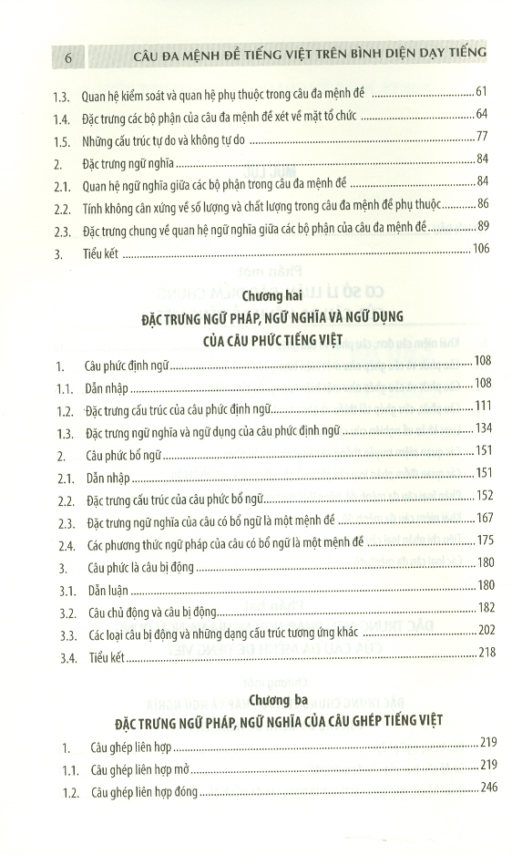 Đối tượng nghiên cứu của tài liệu này là những câu có hơn một đơn vị tính và được các tác giả truyền thống gọi là câu phức và câu ghép, được chúng tôi gọi là câu đa mệnh đề. Mục đích của tài liệu là: (1) Mô tả đặc trưng cấu trúc của hệ thống phát ngôn - cầu mà các tác giả truyền thống thường gọi câu phức/câu đơn phức tạp hoá và câu ghép tiếng Việt, phục vụ cho việc dạy tiếng Việt như một ngoại ngữ và ngôn ngữ thứ hai. (2) Mô tả đặc trưng ngữ pháp, ngữ nghĩa, cách dùng của cầu đa mệnh đề tiếng Việt. Nhiệm vụ của công trình là trên cơ sở tổng kết, kế thừa những thành tựu của ngữ pháp học tiếng Việt đã đạt được trong thời gian vừa qua, từng bước đi sâu thêm để có thể mô tả các kiểu loại cầu đa mệnh để, mô tả một cách chi tiết các đặc trưng ngữ pháp, ngữ nghĩa, ngữ dụng của nó, đặc biệt, nhấn mạnh vào cách hình thành loại câu này. Tìm ra một số biến thể thường gặp trong văn bản và trong hội thoại tiếng Việt để mô hình hoá, hệ thống hoá chung với tư cách là một đơn vị “đầu vào” trong giảng dạy tiếng Việt cho học viên quốc tế. Trên cơ sở đặc thù của cầu đa mệnh đề và phương pháp tiếp cận hiện đại, chúng tôi để xuất một số cách thức giảng dạy loại đơn vị rất cơ bản này của tiếng Việt cho học viên quốc tế. Công trình này; vì thế, trả lời cho câu hỏi dạy cầu đa mệnh để cho học viên quốc tế là dạy cái gì và dạy như thế nào?