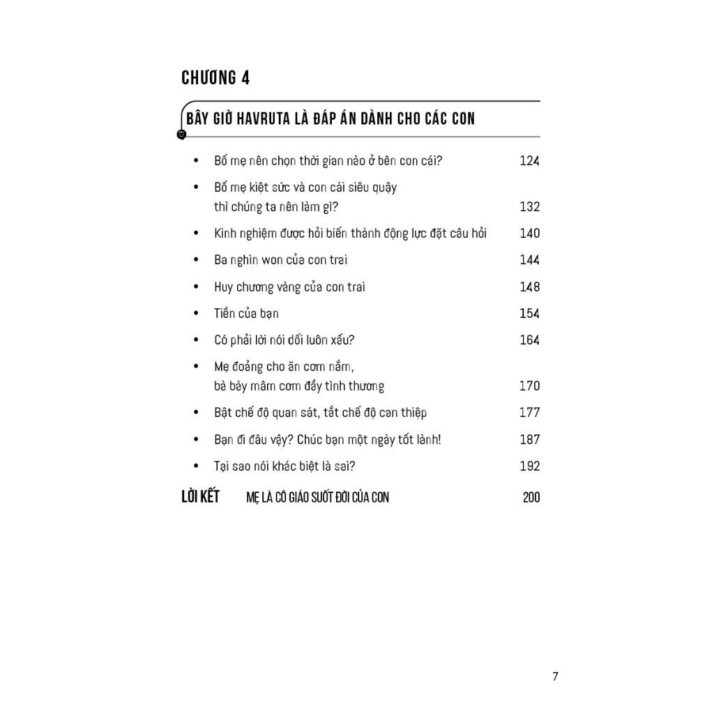 Kết quả là cách suy nghĩ và cuộc sống giữa các thế hệ đã thay đổi rất nhiều. Tuy nhiên, giáo dục trẻ em còn có khoảng cách với sự thay đổi này. Chúng ta thường đối xử với con cái giống như cách mà thế hệ chúng ta được giáo dục tại nhà. Và tác giả Min Hye Young sẽ giúp các bậc cha mẹ thay đổi điều đó bằng phương pháp giáo dục Havruta trong cuốn sách Câu hỏi vĩ đại thay đổi con tôi – Havruta.
