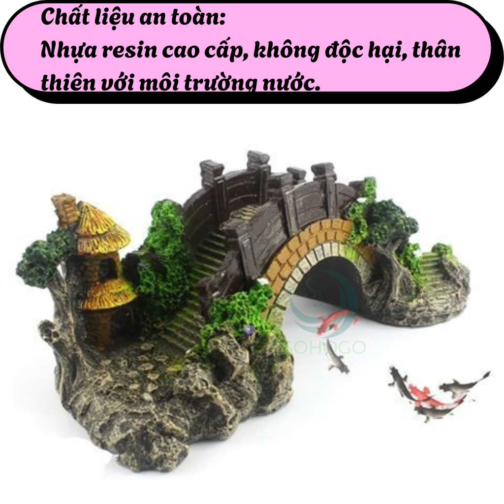 Mua tại TiktokMÔ TẢ SẢN PHẨM: Mang nét cổ điển Á Đông với hình ảnh chiếc cầu cong mềm mại và căn chòi nhỏ bên núi đá, mô hình "Cầu Trang Trí Hồ Cá" là lựa chọn hoàn hảo để tạo điểm nhấn sinh động cho bể cá hoặc tiểu cảnh phong thủy. Sản phẩm được chế tác từ nhựa resin bền bỉ, chịu nước, an toàn cho sinh vật thủy sinh. Với chi tiết sống động, gam màu nổi bật và kiểu dáng tự nhiên, đây là món phụ kiện không thể thiếu cho bất kỳ bể cá cảnh nào. ƯU ĐIỂM NỔI BẬT: