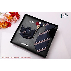 ✨Cavat Bộ Cao Cấp Hàn Quốc 4 món Phụ Kiện - Full box kèm túi xách, xanh đen kẻ