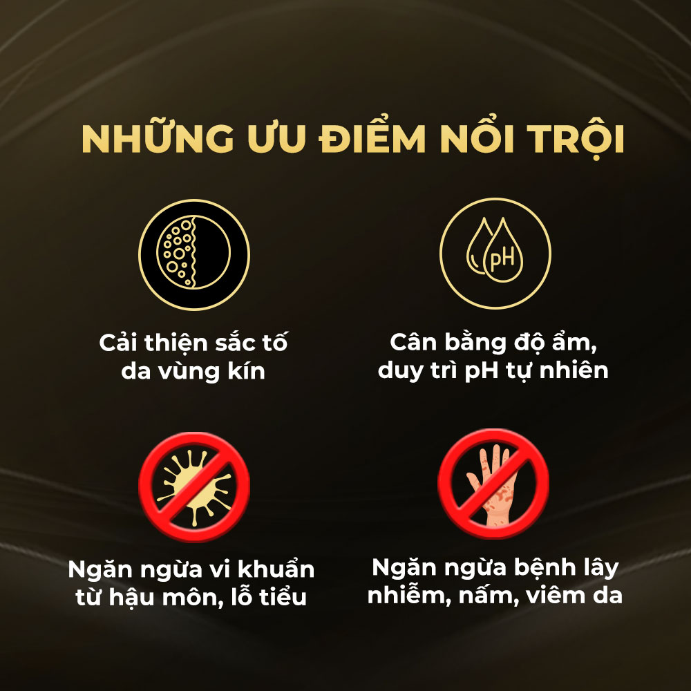 ✪ Đặc điểm: Dạng bọt, có tác dụng tốt trong việc vệ sinh "cậu bé", ngăn mùi hiệu quả. Bên cạnh đó là khả năng kháng khuẩn, ngăn chặn sự sinh sôi của vi khuẩn và nấm gây bệnh. Hương thơm nam tính, quyến rũ đem đến cảm giác tự tin, thoải mái cho người dùng. Thành phần sản phẩm giúp cải thiện sắc tố da, giảm thâm và làm sáng da, duy trì độ đàn hồi và mềm mịn. Sản phẩm có thể sử dụng mỗi ngày.