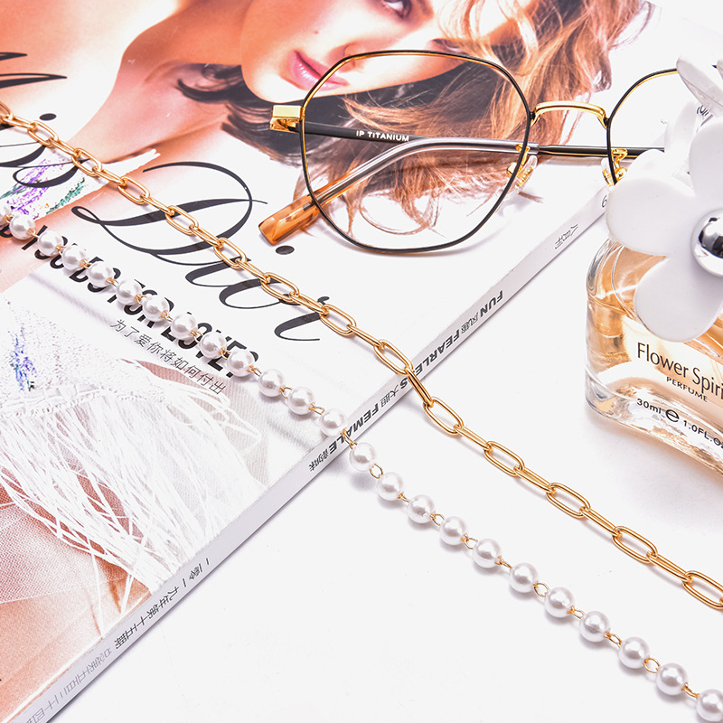 Chuỗi xích đeo mắt kính chống rơi rớt hạt châu bất đối xứng thời trang nam và nữ cá tính Chuỗi xích đeo mắt kính chống rơi rớt hạt châu bất đối xứng thời trang