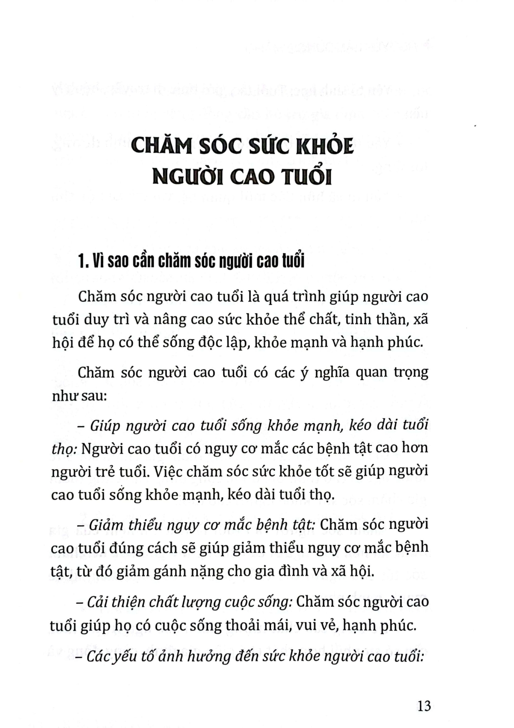 Cuốn sách Chăm Sóc Người Cao Tuổi của Nguyễn Lân Dũng là một nguồn tài liệu quý giá về việc duy trì và cải thiện sức khỏe cho người cao tuổi. Tác giả nhấn mạnh vào tầm quan trọng của việc chăm sóc để giúp họ duy trì sự độc lập và hạnh phúc. Qua việc thảo luận về các yếu tố ảnh hưởng đến sức khỏe như tuổi tác, môi trường sống và vai trò xã hội, cuốn sách không chỉ nhấn mạnh vào việc phòng ngừa bệnh tật mà còn khuyến khích gia đình và cộng đồng tham gia tích cực vào quá trình chăm sóc. Đây là tài liệu quan trọng giúp nâng cao nhận thức và chất lượng cuộc sống của người cao tuổi, đồng thời đề cao vai trò của sự hợp tác giữa các bên liên quan trong việc chăm sóc sức khỏe người cao tuổi.