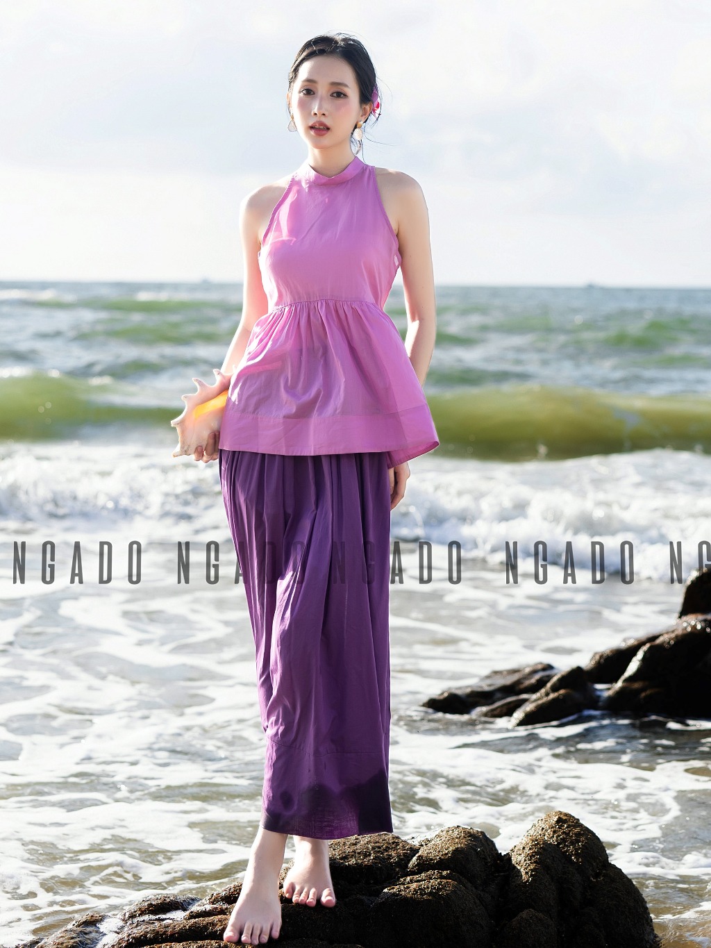 ✨Chân váy tím đậm NGADO , Chân váy xòe , Chân váy dài , Chân váy thiết kế