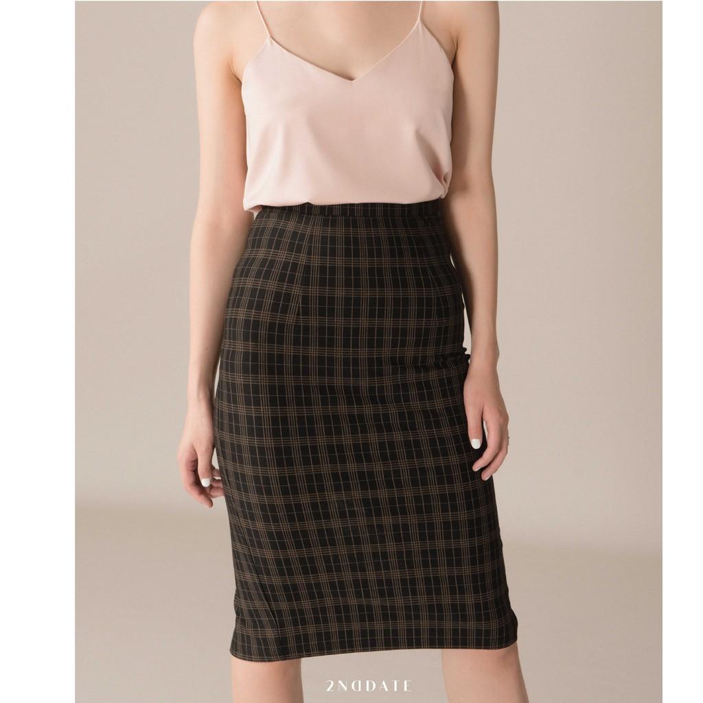✨Chân váy bút chì nữ co giãn họa tiết kẻ 2NDDATE SK012MBC